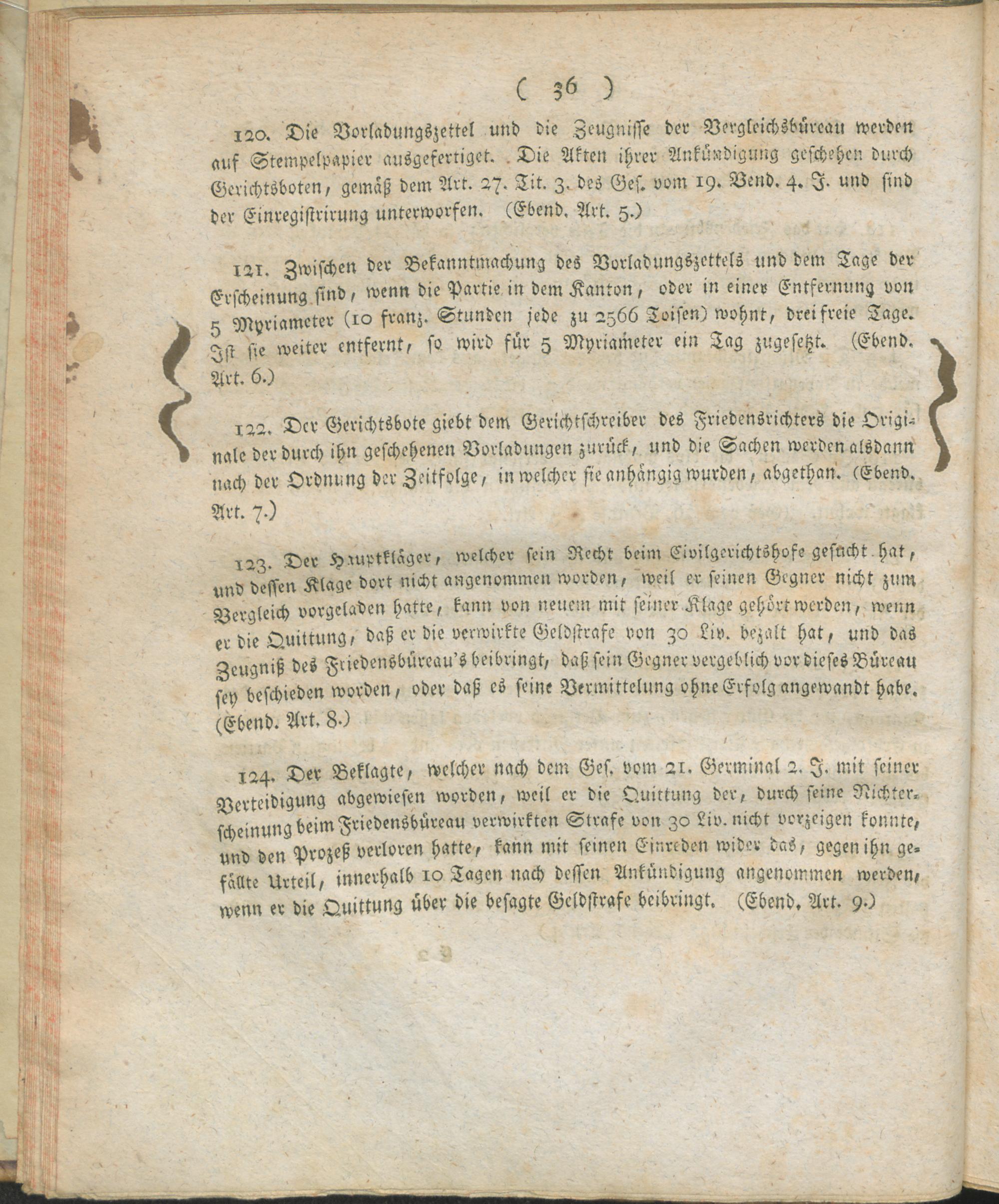 8. Auszug aus dem Register der Beschlüsse des Regierungs-Kommissars in den vier neuen Departementen des linken Rhein-Ufers ; vom 24ten Frimär 7ten Jahrs der fränkischen untheilbar-vereinten Republik : Fortsetzung der Verwaltungs-Ordnung