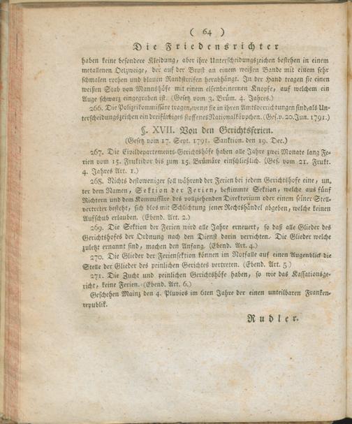 VerwGerAusg,Forts. Fortsetzung der Verordnung über die Verwaltungs- und Gerichts-Ausgaben : Auszug aus dem Register der Beschlüsse des Regierungs-Kommissärs in den vier neuen Departementen des linken Rhein-Ufers ; vom 21ten Rivose 7ten Jahrs der ein- und untheilbaren Franken-Republik