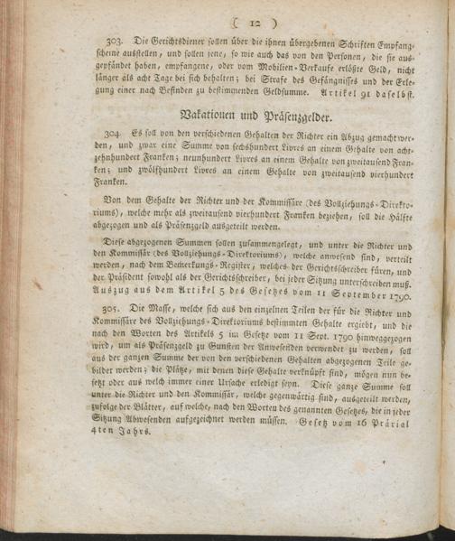 VerwGerAusg,Forts. Fortsezung der Verordnung über die Verwaltungs- und Gerichts-Ausgaben : Auszug aus dem Register der Beschlüsse des Regierungs-Kommissärs in den vier neuen Departementen des linken Rhein-Ufers ; vom 17ten Thermidor, 7ten Jahres der untheilbar-vereinten Franken-Republik