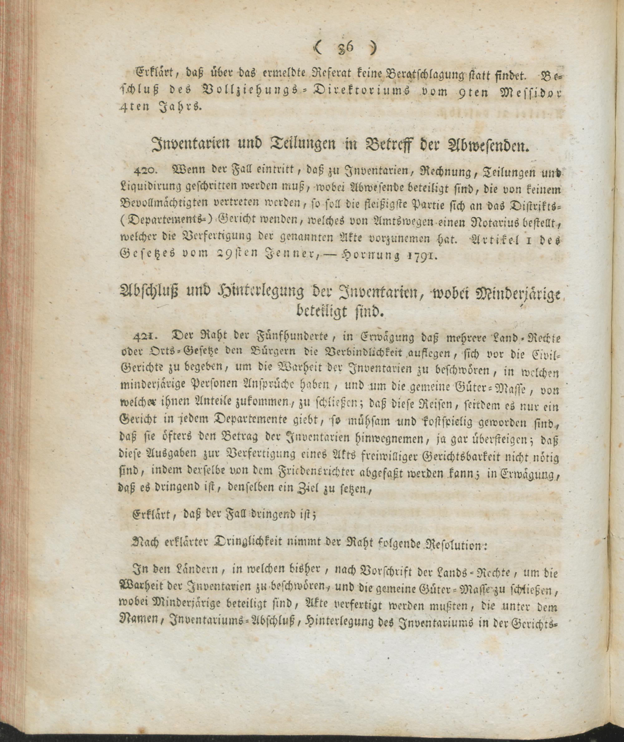 Verw,Forts,4. Auszug aus dem Register der Beschlüsse des Regierungs-Kommissars in den vier neuen Departementen des linken Rhein-Ufers ; Mainz den 9ten Thermidor, 7ten Jahres der untheilbar-vereinten Franken-Republik : Fortsetzung der Verwaltungs-Ordnung