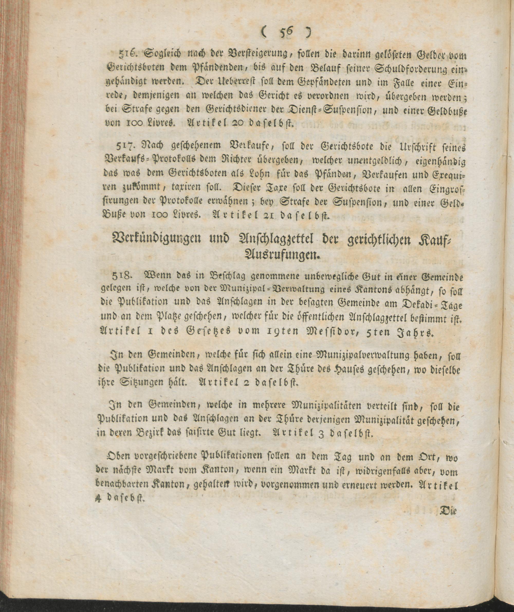 Verw,Forts,4. Auszug aus dem Register der Beschlüsse des Regierungs-Kommissars in den vier neuen Departementen des linken Rhein-Ufers ; Mainz den 9ten Thermidor, 7ten Jahres der untheilbar-vereinten Franken-Republik : Fortsetzung der Verwaltungs-Ordnung