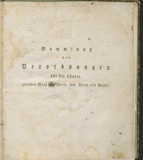 Sammlung von Verordnungen welche der Regierungs-Kommissaer fuer die Laender zwischen Maas und Rhein, und Rhein und Mosel, ...