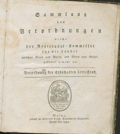 Sammlung von Verordnungen welche der Regierungs-Kommissaer fuer die Laender zwischen Maas und Rhein, und Rhein und Mosel, ...