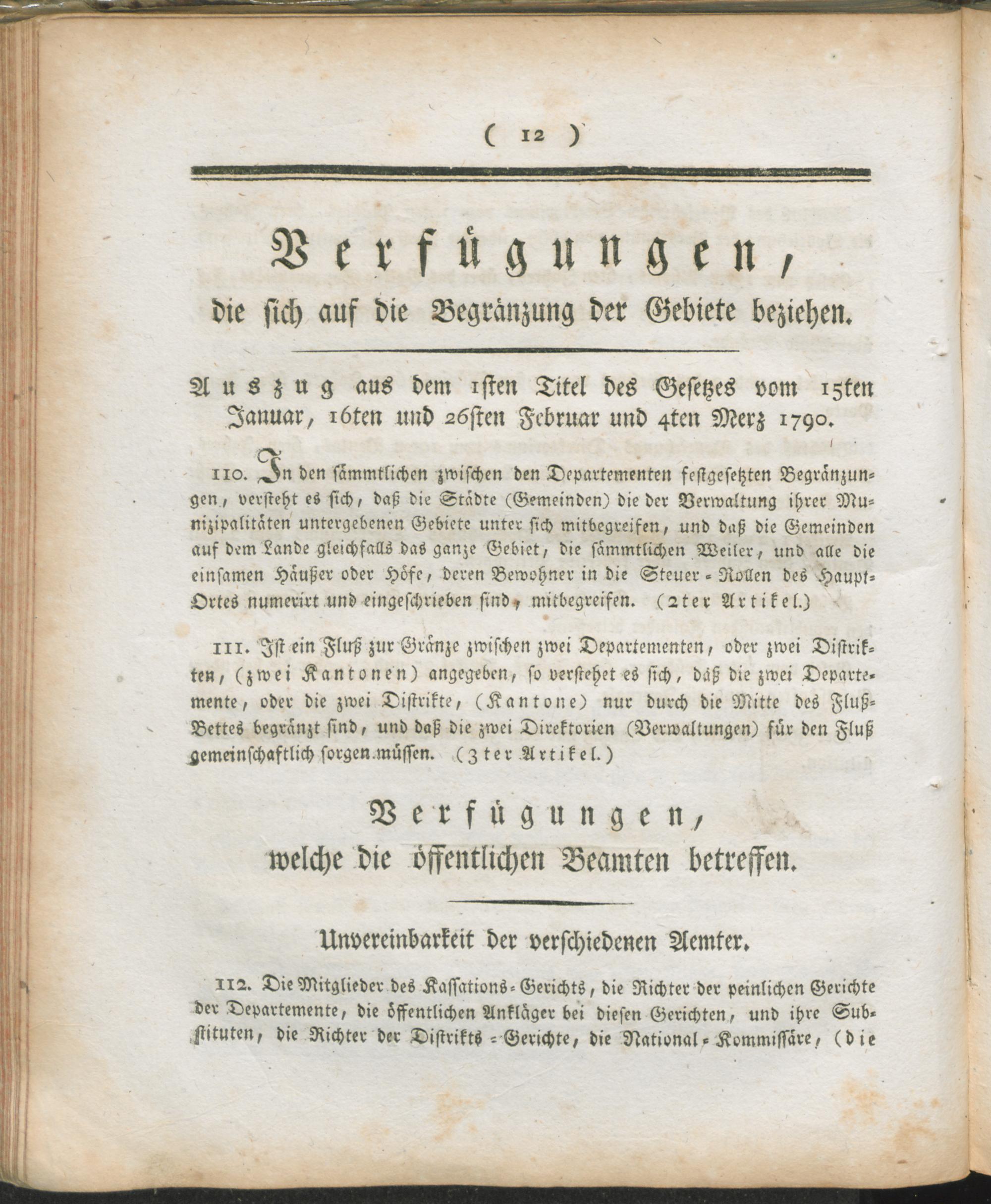 Verw,fern,2. Fernere Verordnung über das Verwaltungswesen : Auszug aus dem Register der Beschlüsse des Regierungs-Kommissärs in den vier neuen Departementen des linken Rhein-Ufers ; Mainz, den 12ten Prärial 7ten Jahrs der fränkischen unteilbar-vereinten Republik