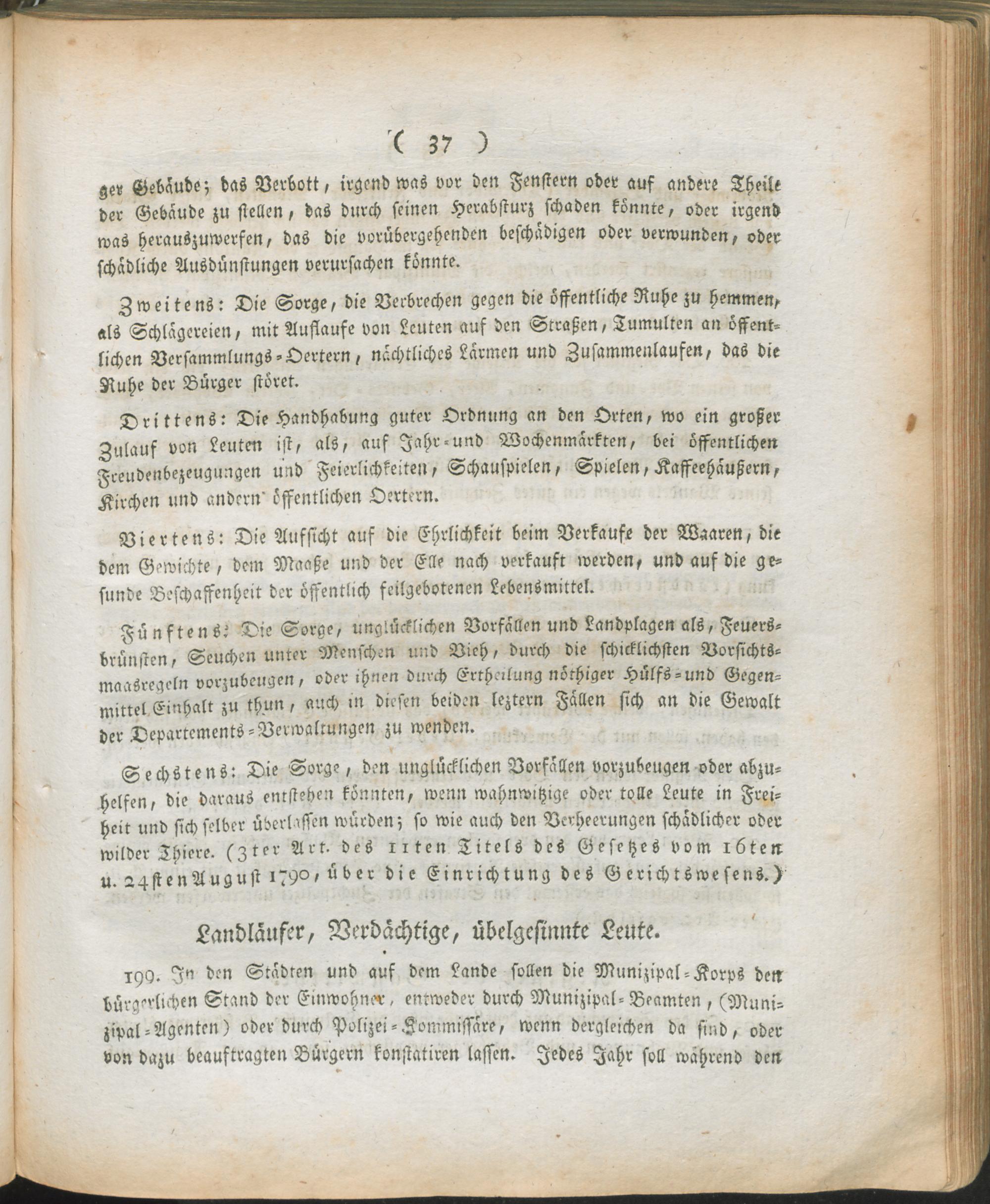 Verw,Forts,4. Auszug aus dem Register der Beschlüsse des Regierungs-Kommissars in den vier neuen Departementen des linken Rhein-Ufers ; Mainz den 9ten Thermidor, 7ten Jahres der untheilbar-vereinten Franken-Republik : Fortsetzung der Verwaltungs-Ordnung