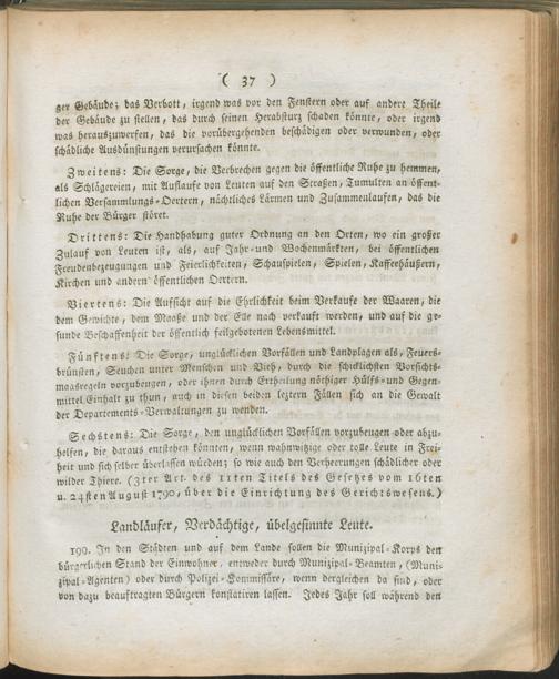 9 (1798) Verordnungen für die Vier neu errichteten Departemente auf dem linken Rhein-Ufer : Fortsetzung der Verwaltungs-Ordnung / [Rudler]