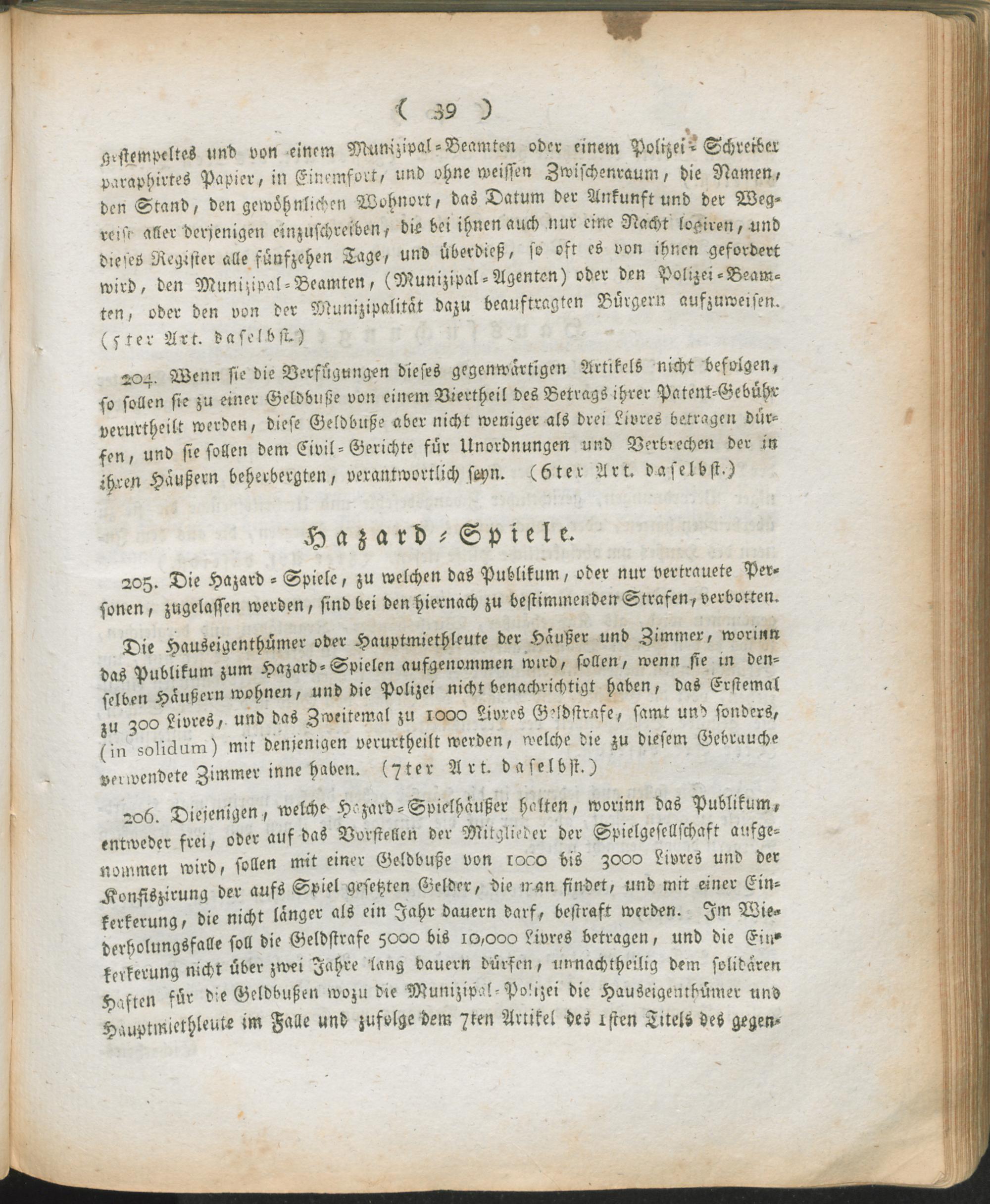 Verw,Forts,4. Auszug aus dem Register der Beschlüsse des Regierungs-Kommissars in den vier neuen Departementen des linken Rhein-Ufers ; Mainz den 9ten Thermidor, 7ten Jahres der untheilbar-vereinten Franken-Republik : Fortsetzung der Verwaltungs-Ordnung