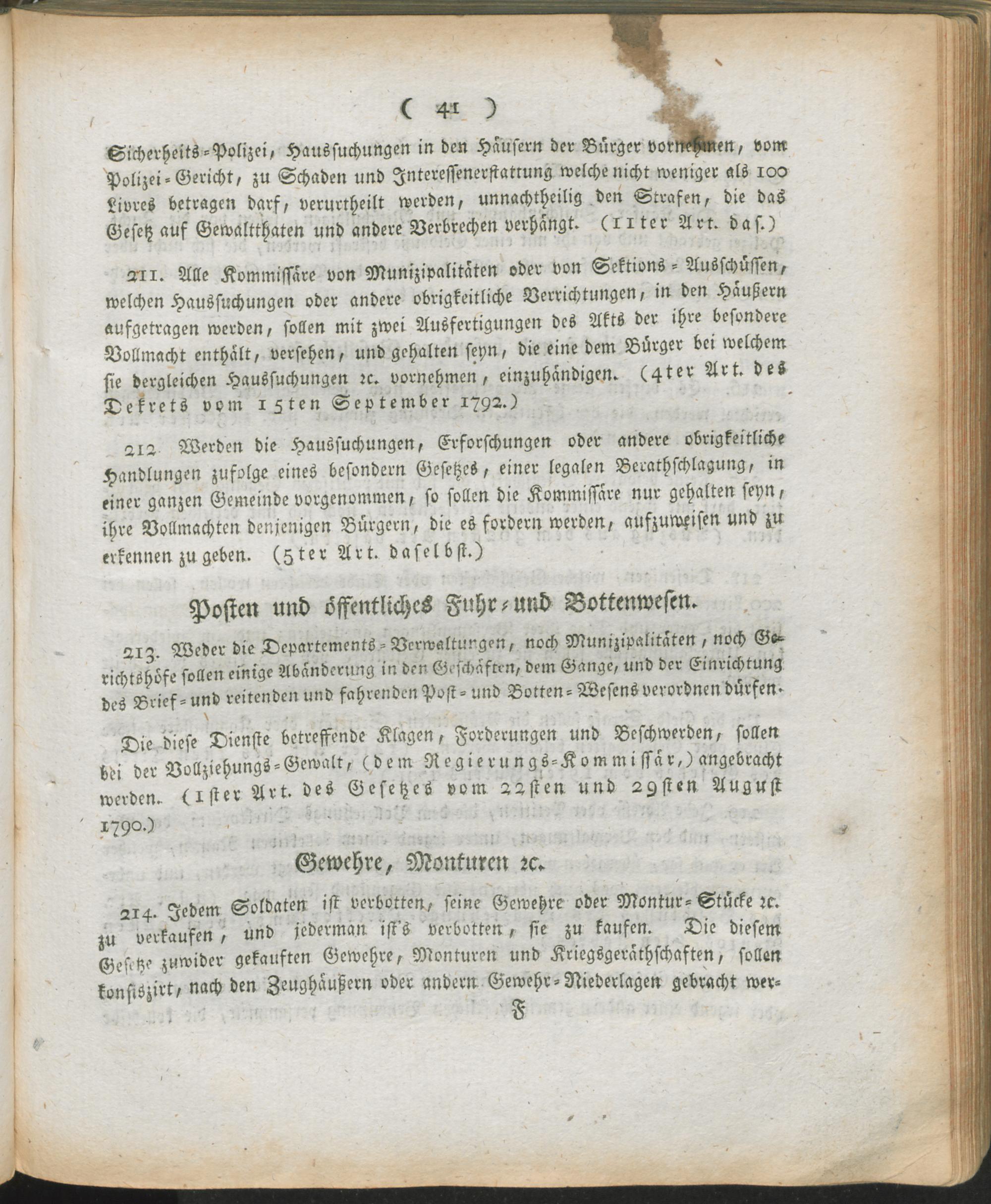 Verw,Forts,4. Auszug aus dem Register der Beschlüsse des Regierungs-Kommissars in den vier neuen Departementen des linken Rhein-Ufers ; Mainz den 9ten Thermidor, 7ten Jahres der untheilbar-vereinten Franken-Republik : Fortsetzung der Verwaltungs-Ordnung