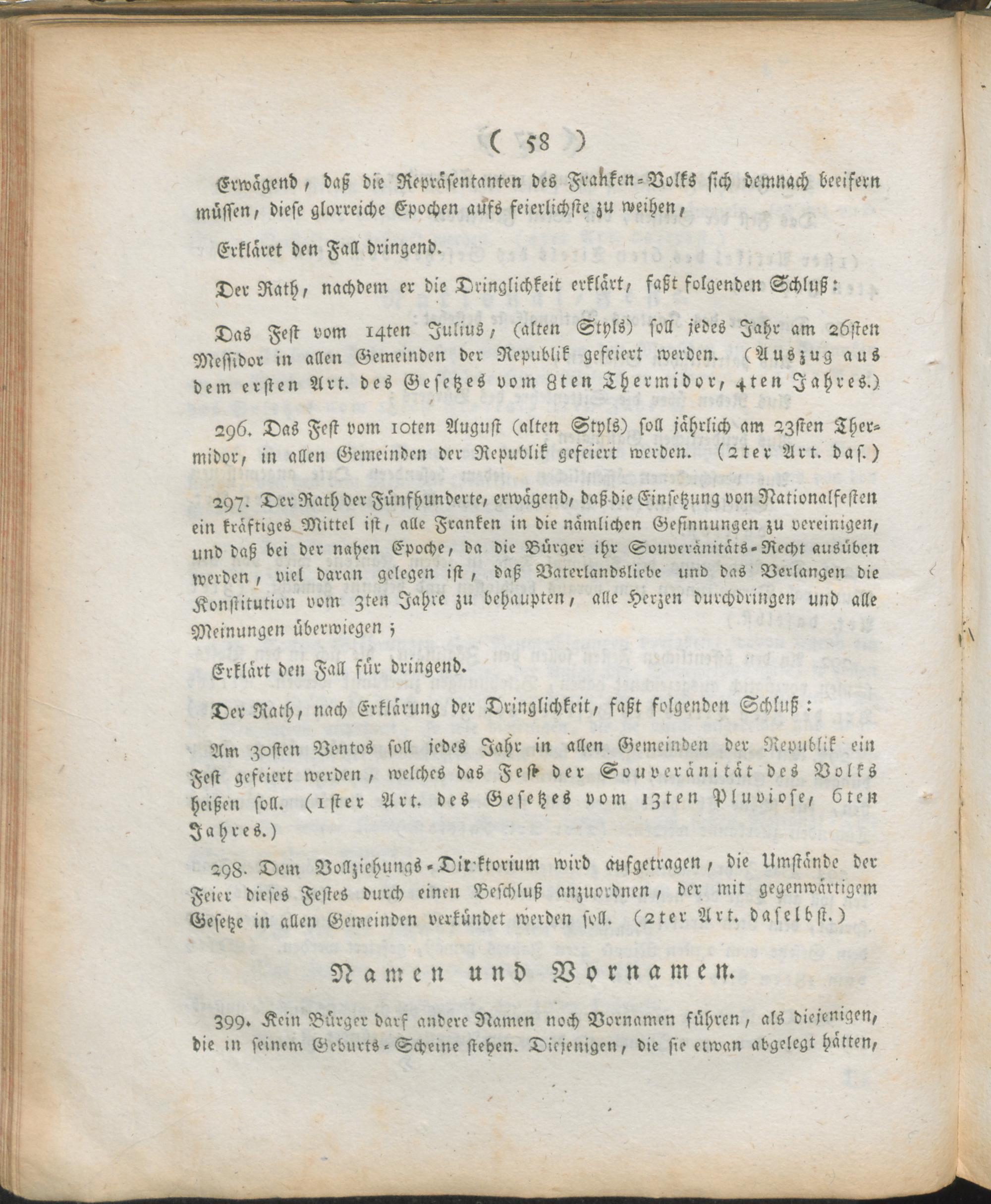 Verw,Forts,4. Auszug aus dem Register der Beschlüsse des Regierungs-Kommissars in den vier neuen Departementen des linken Rhein-Ufers ; Mainz den 9ten Thermidor, 7ten Jahres der untheilbar-vereinten Franken-Republik : Fortsetzung der Verwaltungs-Ordnung