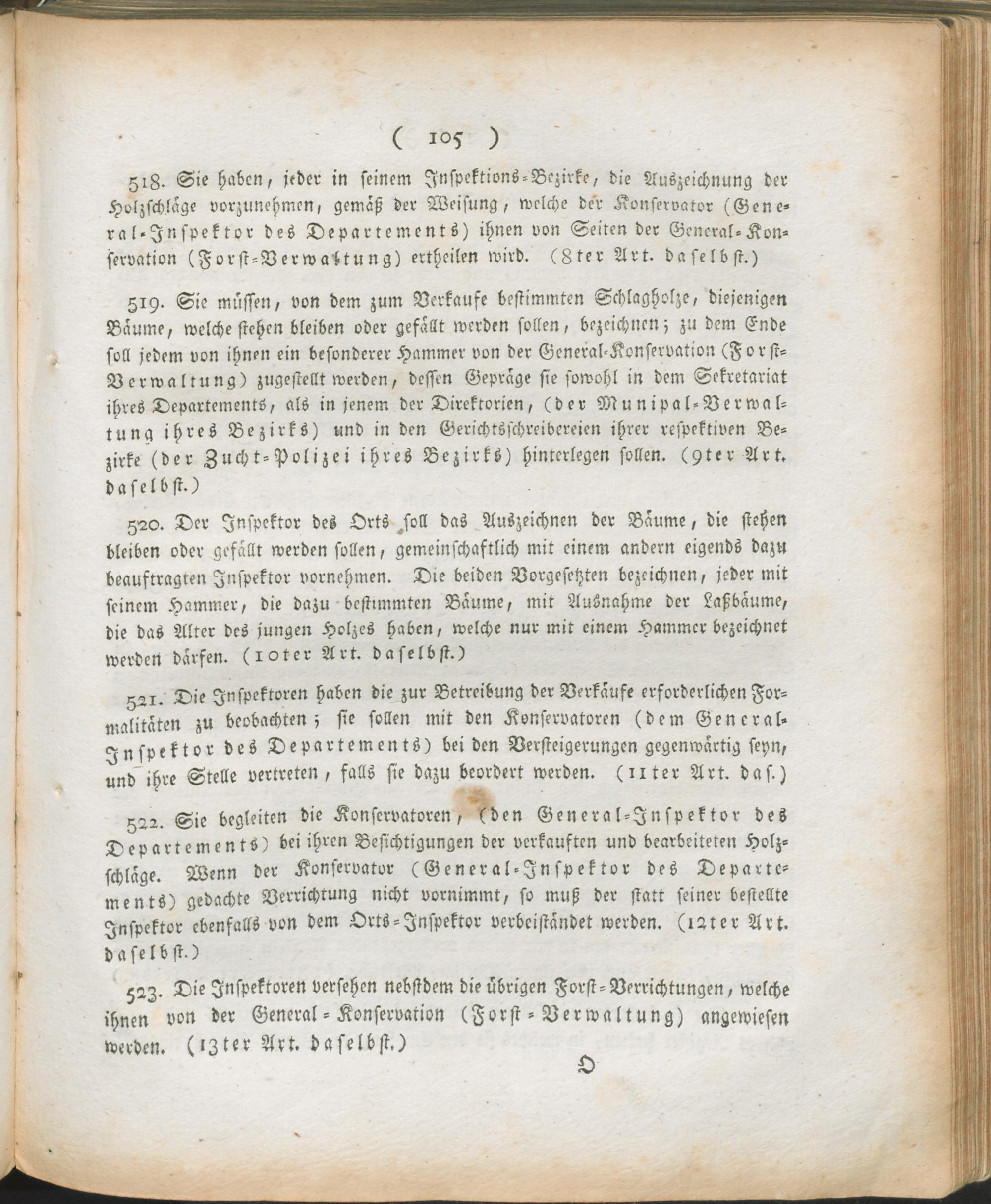 8. Auszug aus dem Register der Beschlüsse des Regierungs-Kommissars in den vier neuen Departementen des linken Rhein-Ufers ; vom 24ten Frimär 7ten Jahrs der fränkischen untheilbar-vereinten Republik : Fortsetzung der Verwaltungs-Ordnung