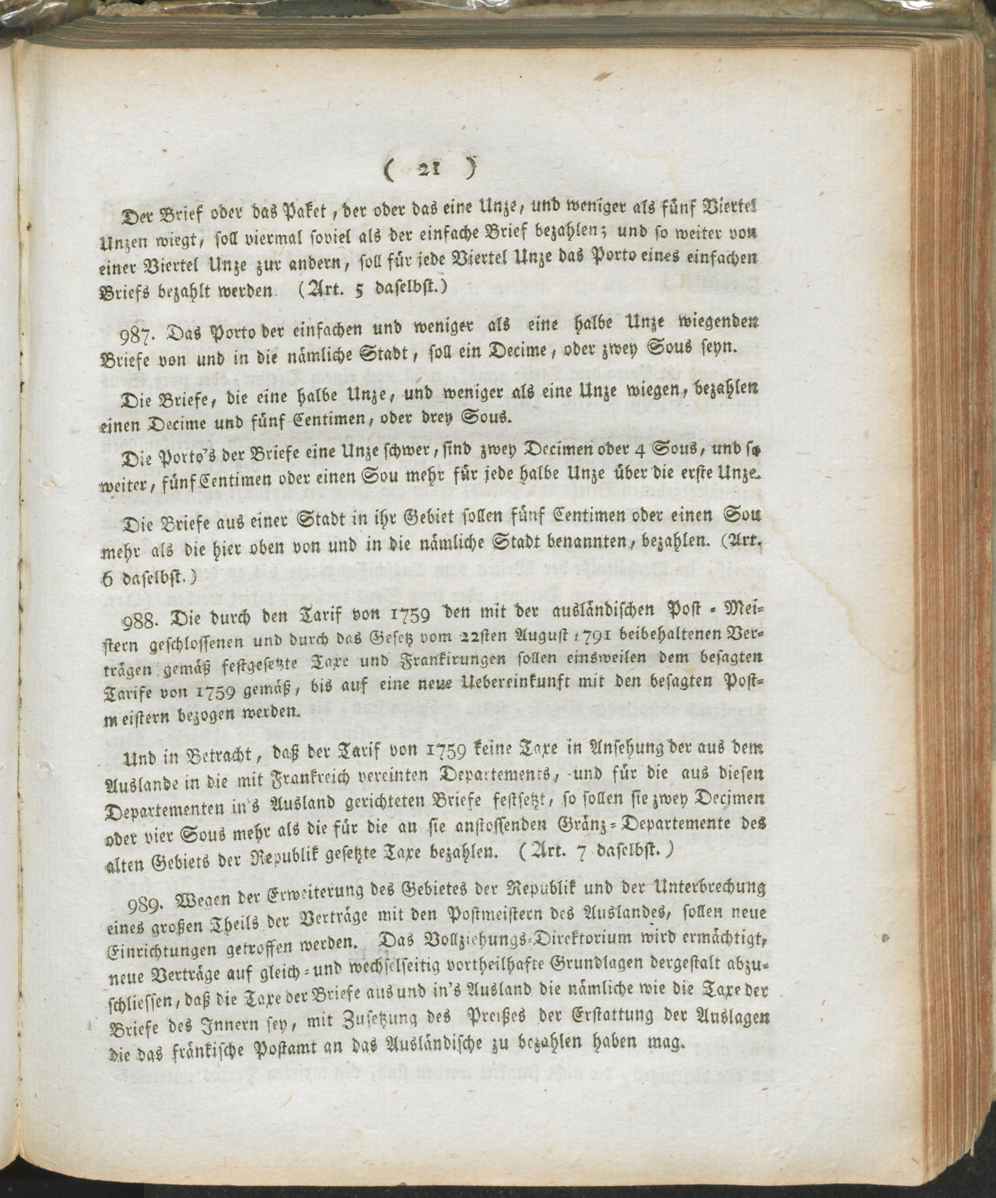 8 (1799) Auszug aus dem Register der Beschlüsse des Regierungs-Kommissars in den vier neuen Departementen des linken Rhein-Ufers ; vom 24ten Frimär 7ten Jahrs der fränkischen untheilbar-vereinten Republik : Fortsetzung der Verwaltungs-Ordnung / [Rudler]