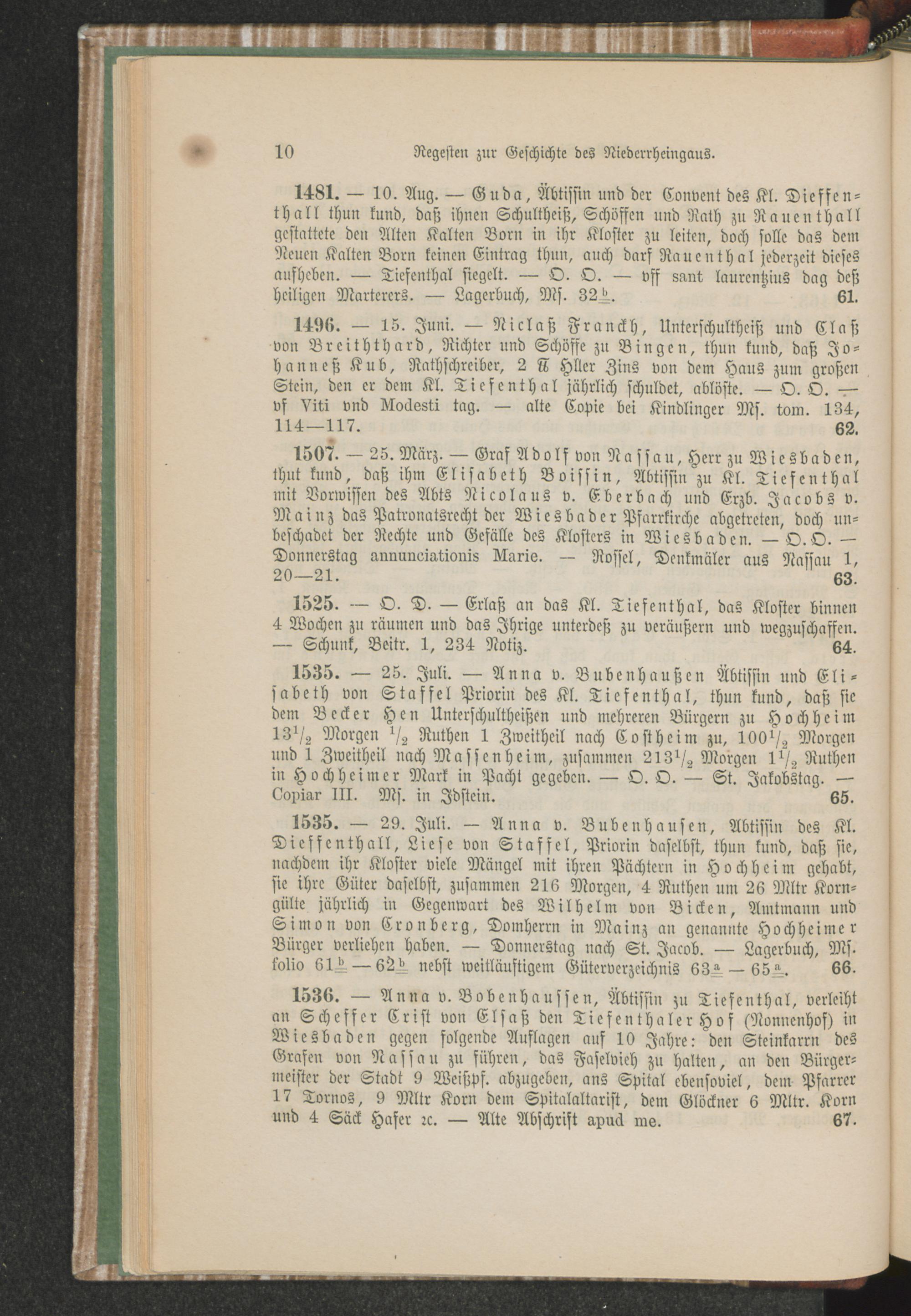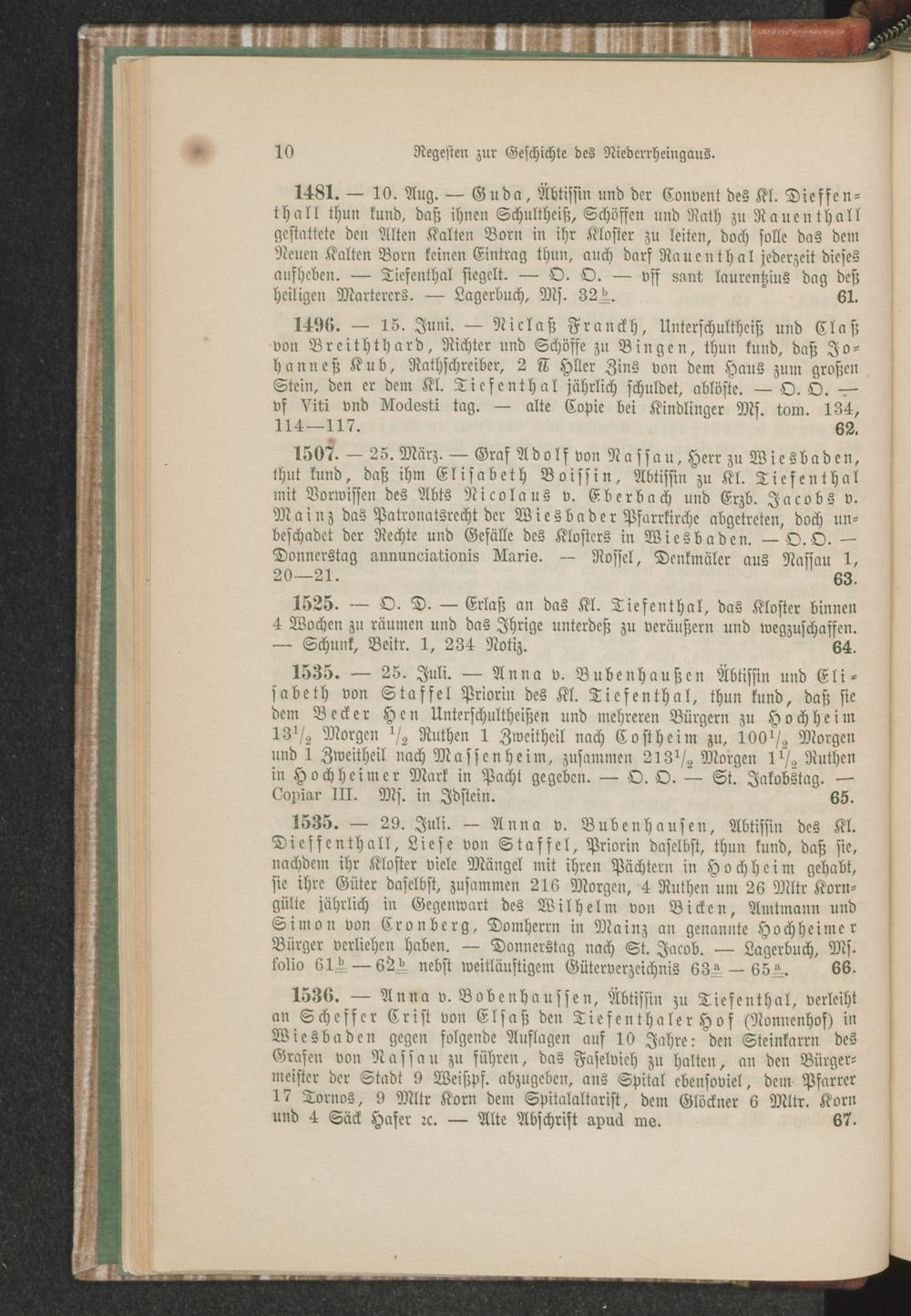 Regesten zur Geschichte des Niederrheingaus.