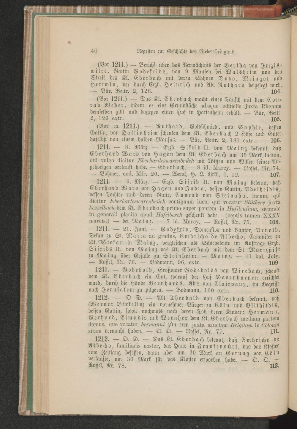 Regesten zur Geschichte des Niederrheingaus.