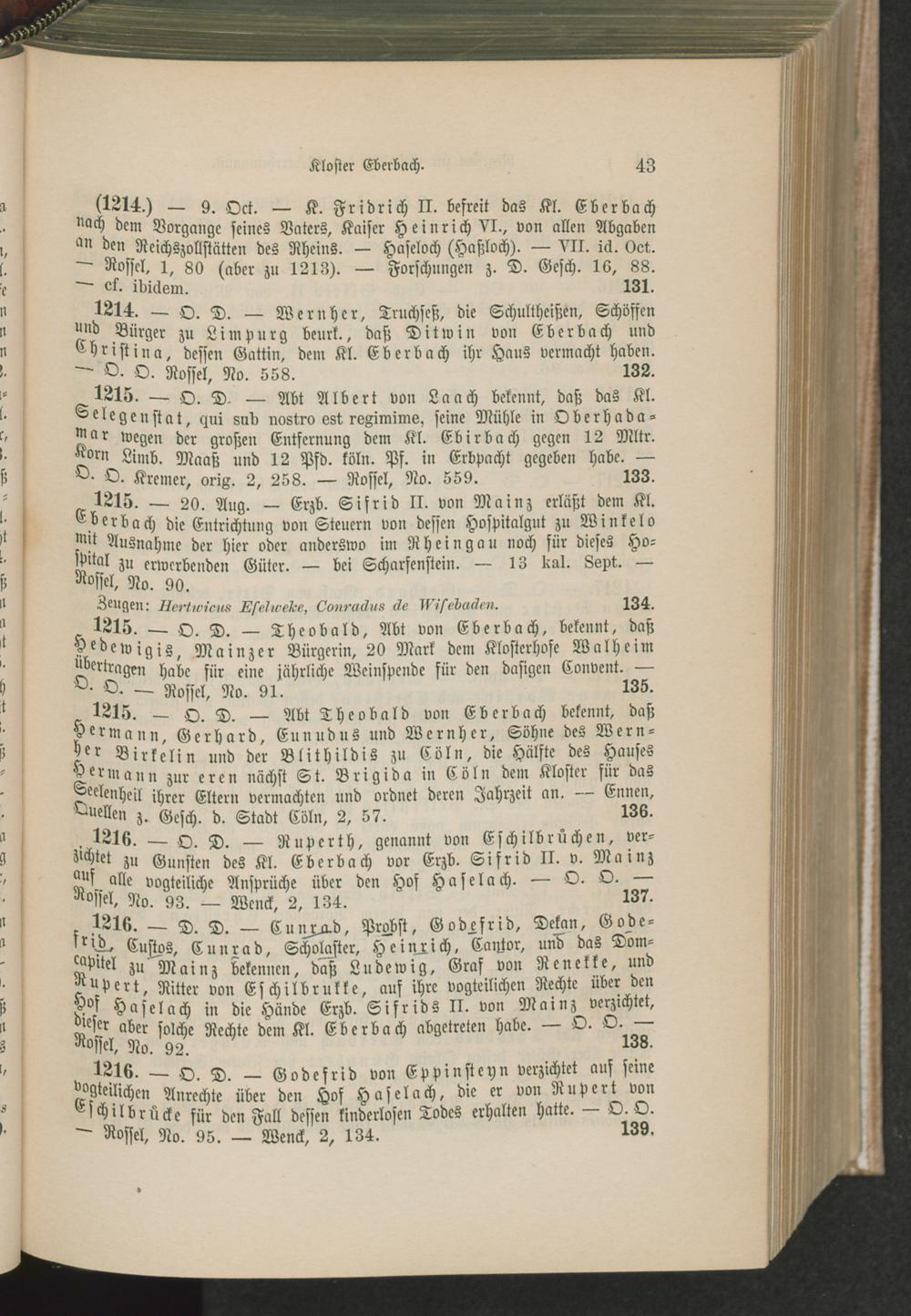 Regesten zur Geschichte des Niederrheingaus.