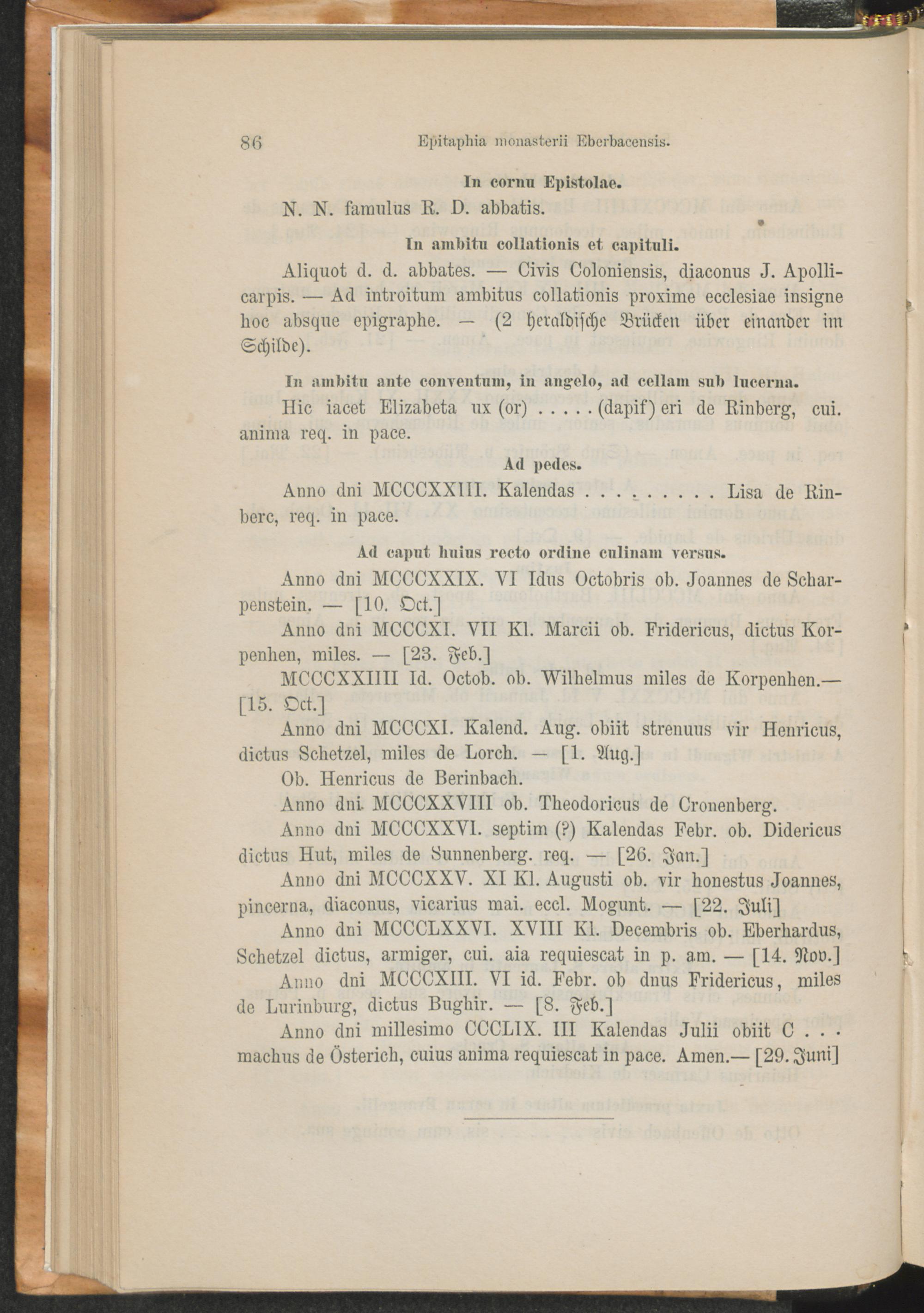 Epitaphia monasterii Eberbacensis.