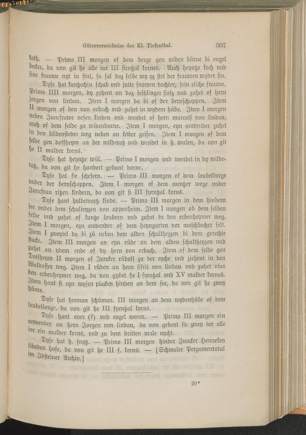 Güterverzeichnis des Kl. Tiefenthal (saec. 14.)