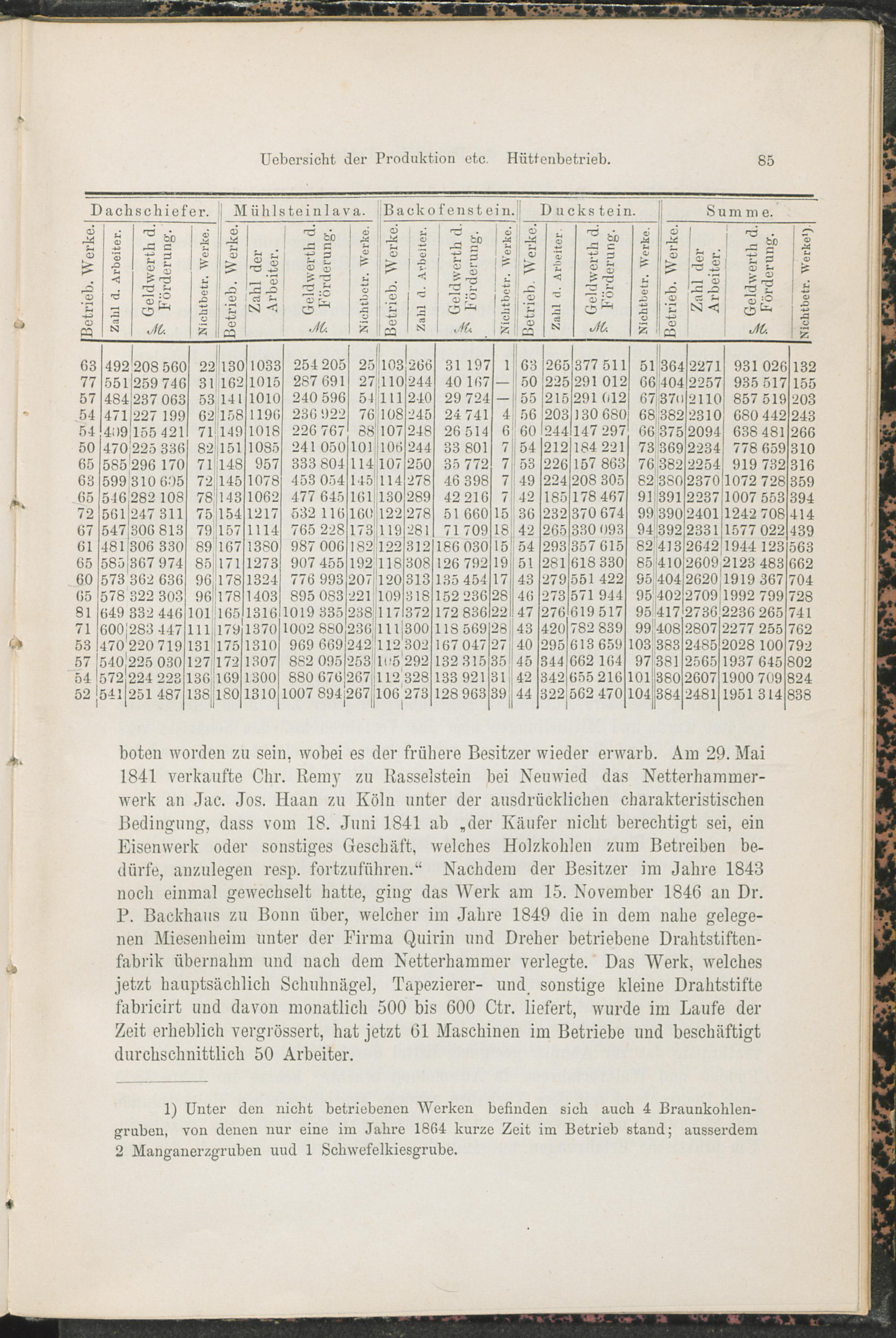 V. Lagerungs- und Betriebsverhältnisse auf den wichtigeren Werken. Nachrichten über den früheren Betrieb.