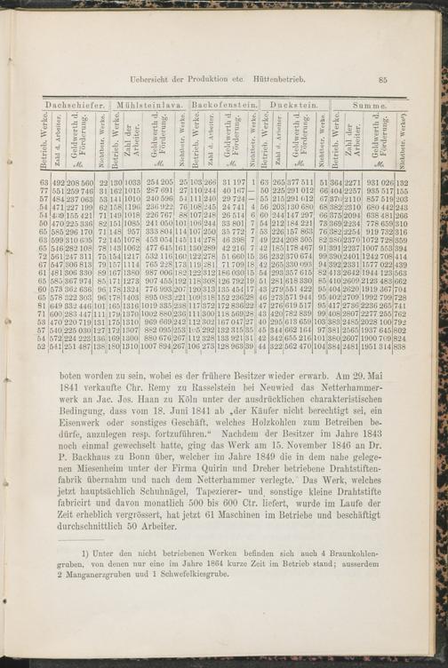 VI. Produktion und Geldwerth derselben. Zahl der Werke und Arbeiter./ VII. Hütte...