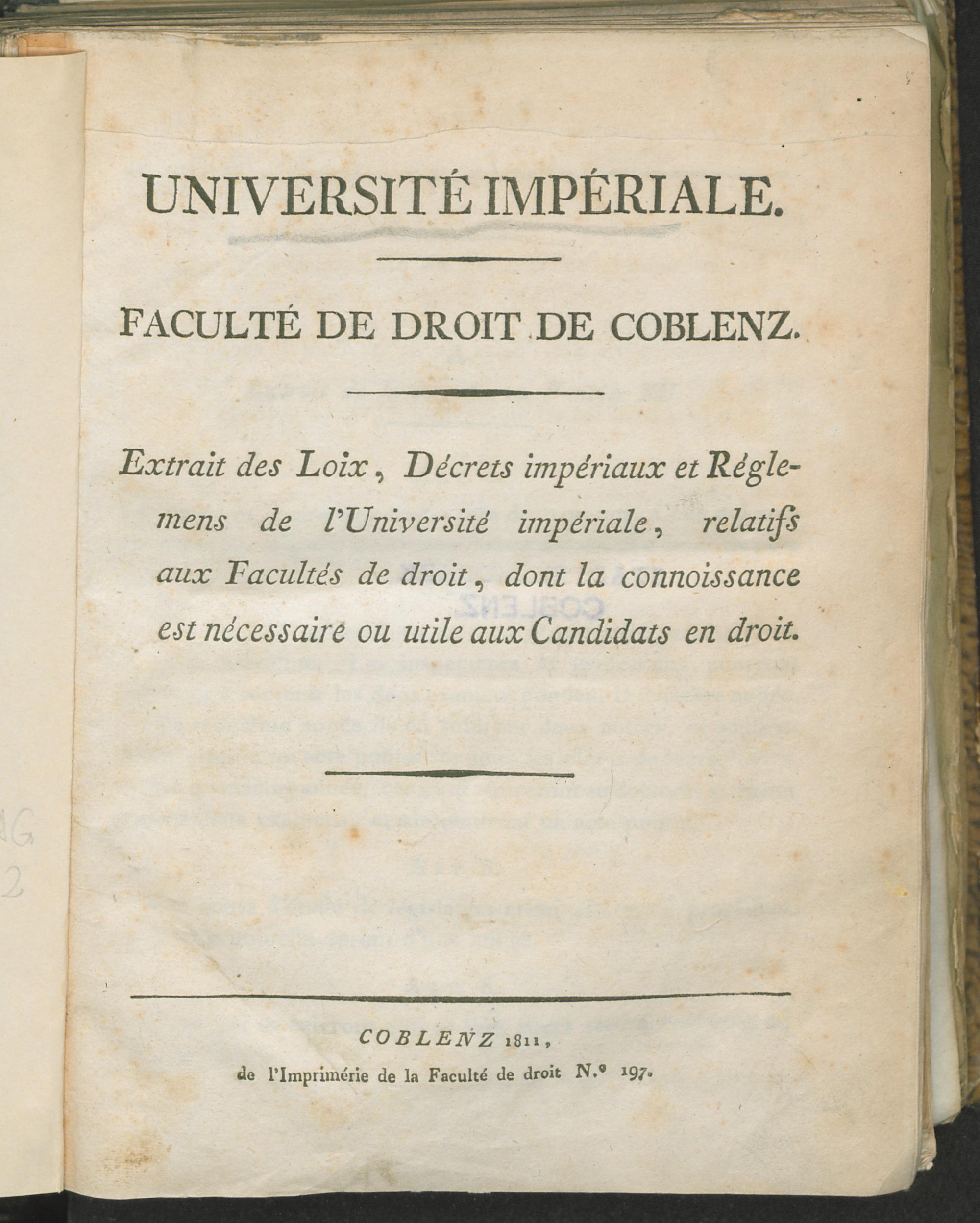 Extrait des loix, décrets impériaux et réglemens de l'Université Impériale, relatifs aux Facultés de Droit, dont la connoissance est nécessaire ou utile aux candidats en droit
