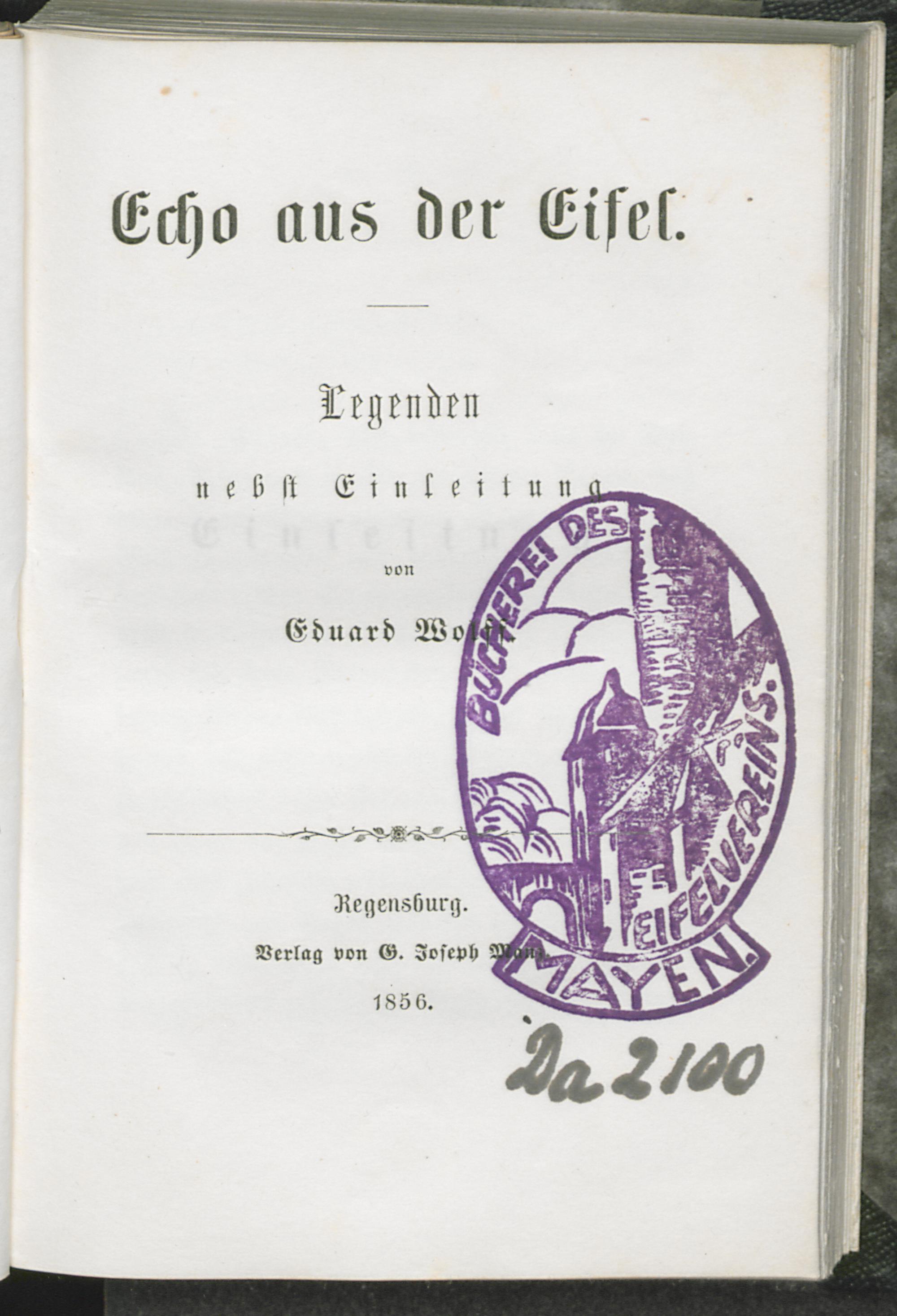 Echo aus der Eifel : Legenden nebst Einleitung / Eduard Wolff