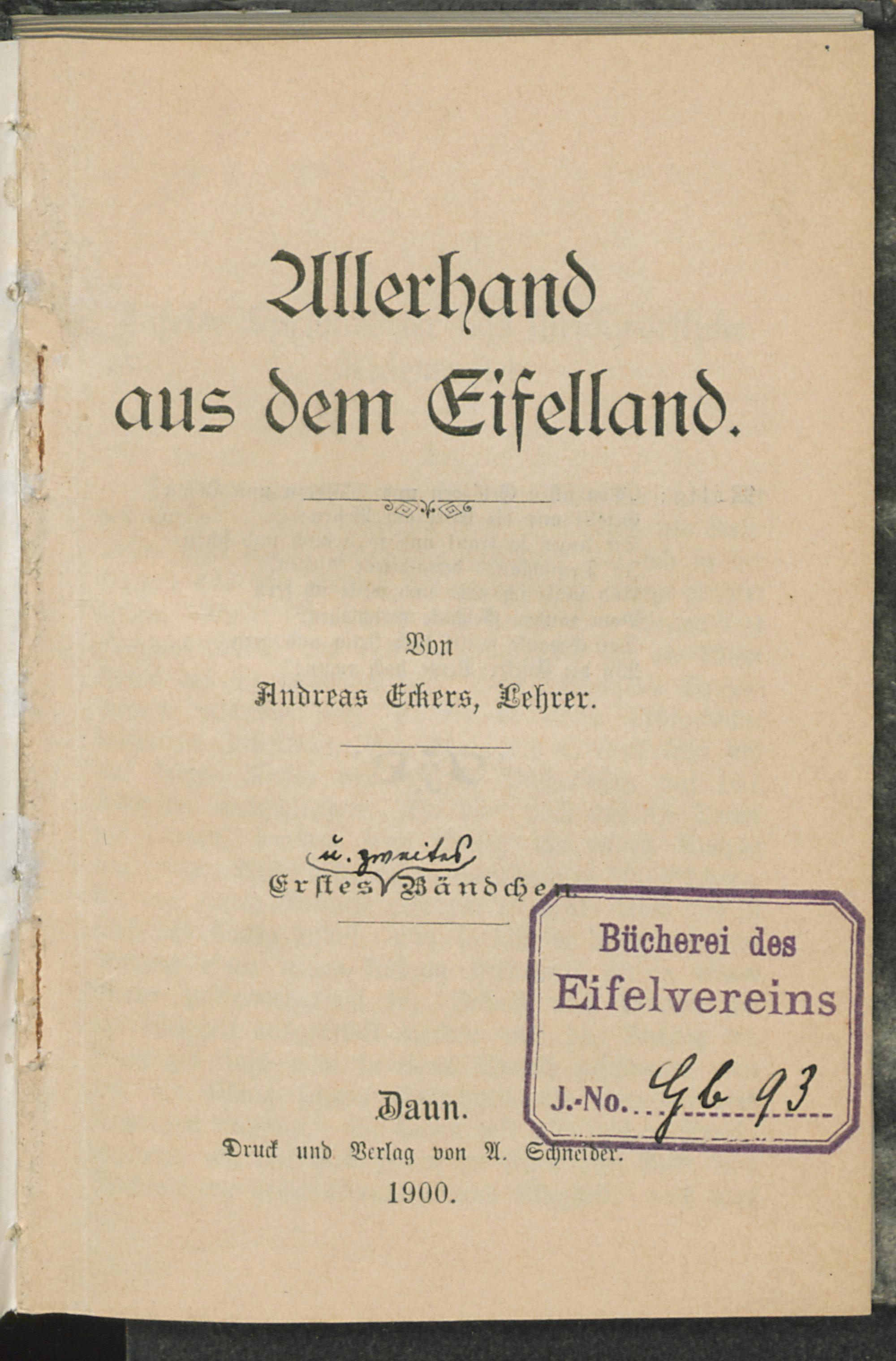 1 (1900) Allerhand aus dem Eifelland / Andreas Eckers