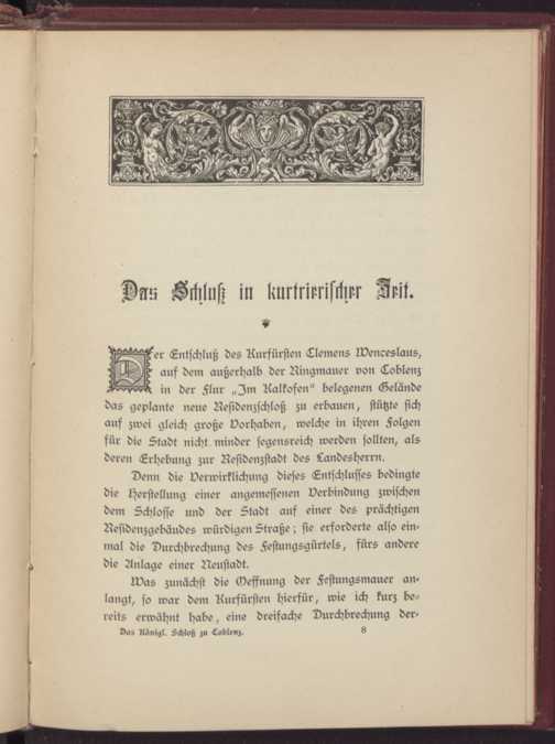 Das königliche Schloß zu Coblenz : ein Beitrag zur Geschichte des letzten Kurfürsten von Trier Clemens Wenceslaus und der Stadt Coblenz / [Becker]