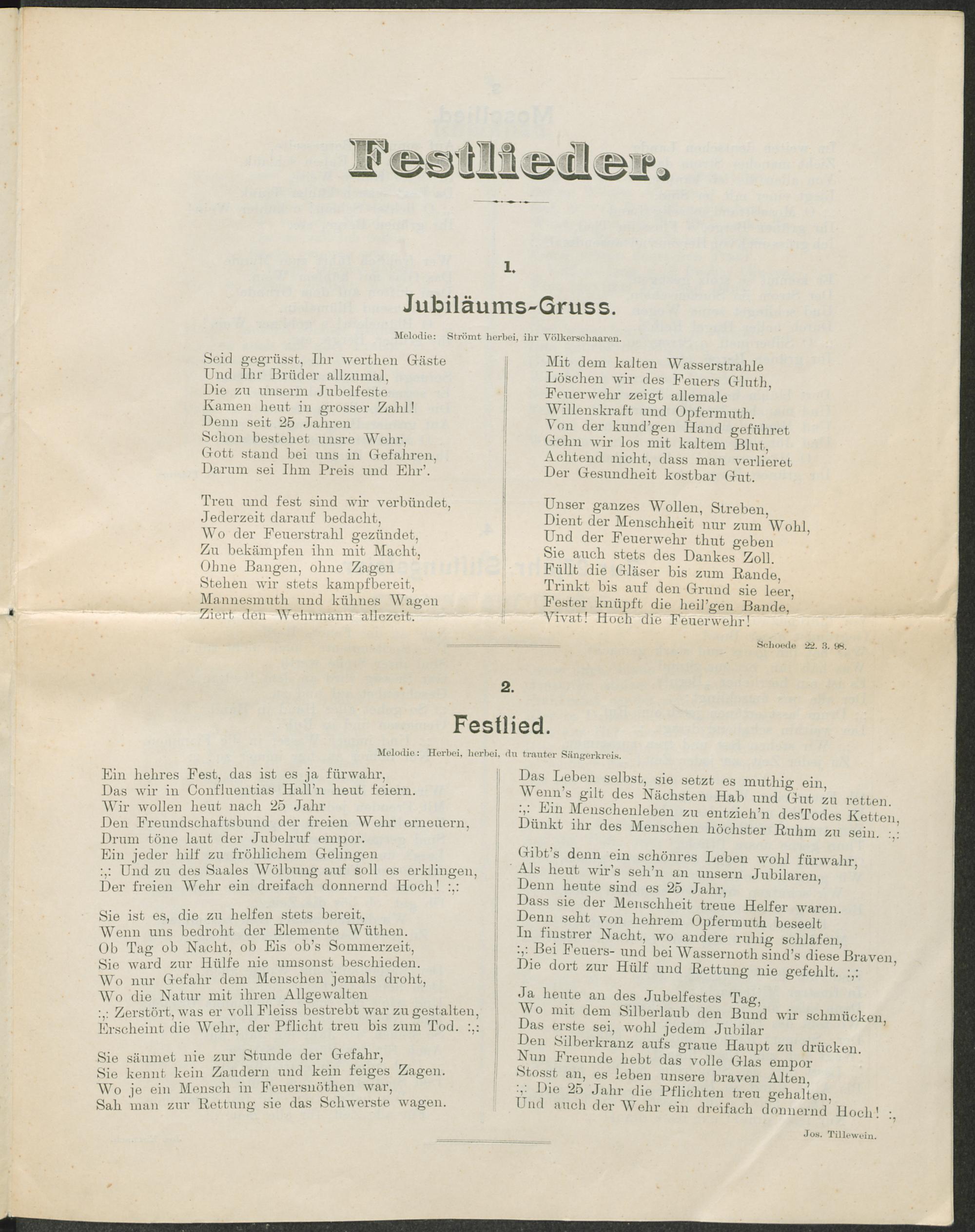 Zum 25jährig. Jubelfeste der Freiwilligen Feuerwehr der Residenzstadt Coblenz : am Sonntag, den 8. Mai 1898