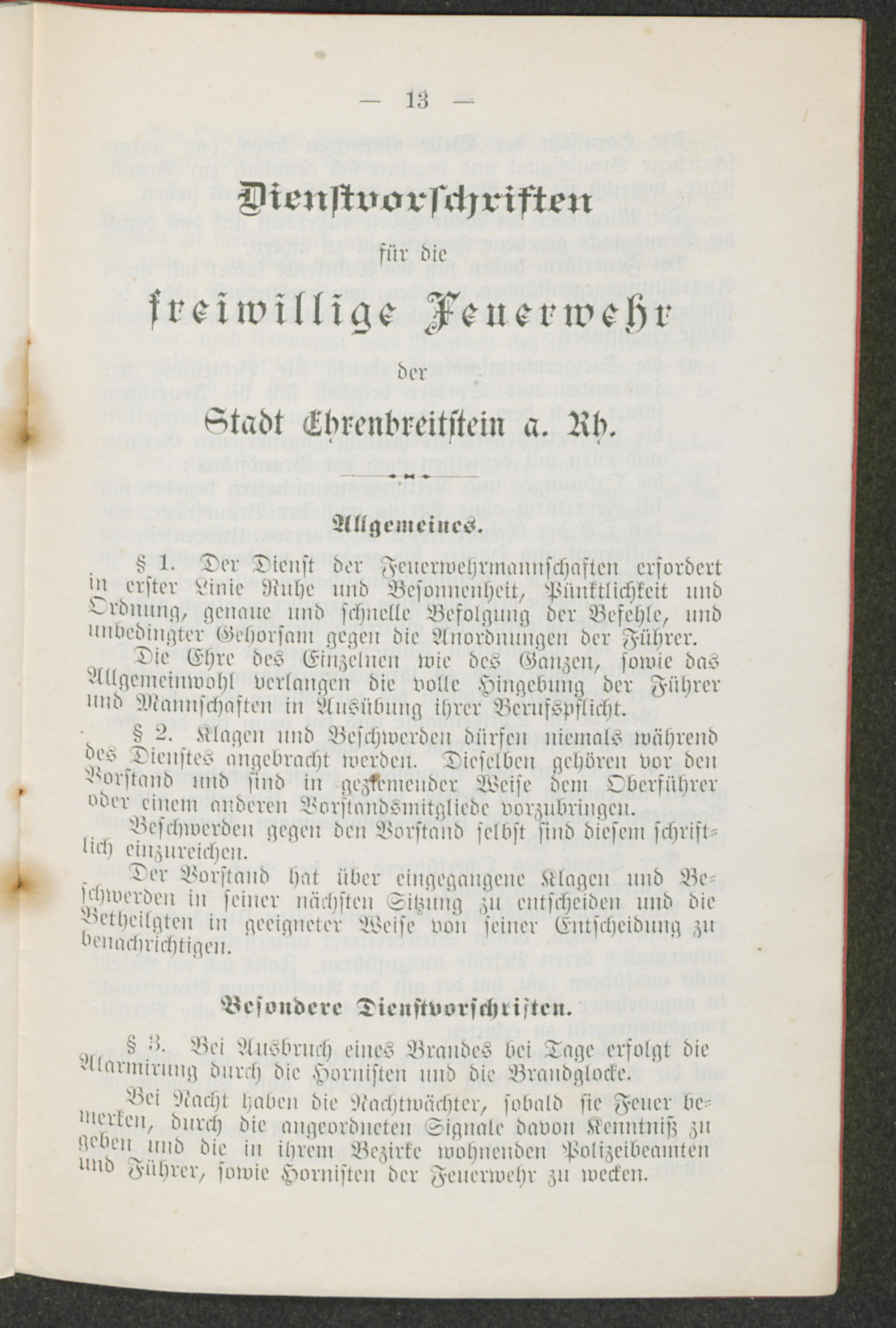 Dienstvorschriften für die freiwillige Feuerwehr der Stadt Ehrenbreitstein a. Rh.