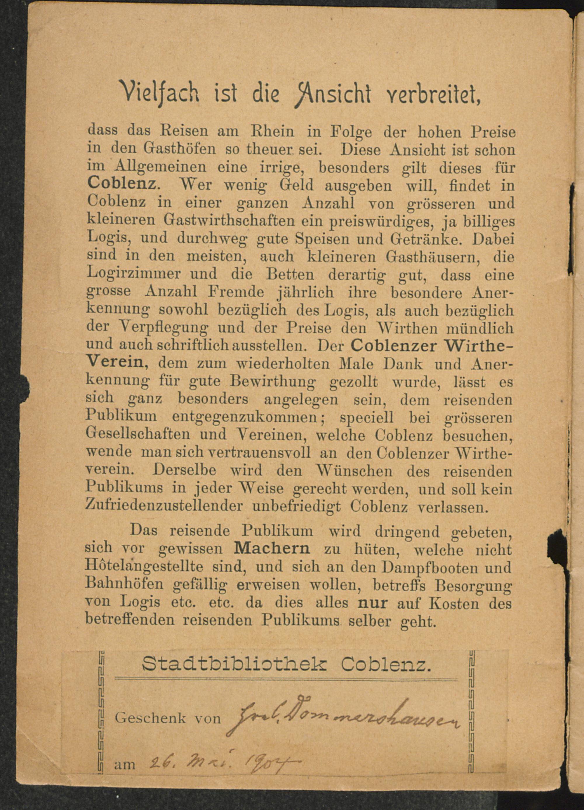 Führer durch die Stadt Coblenz.