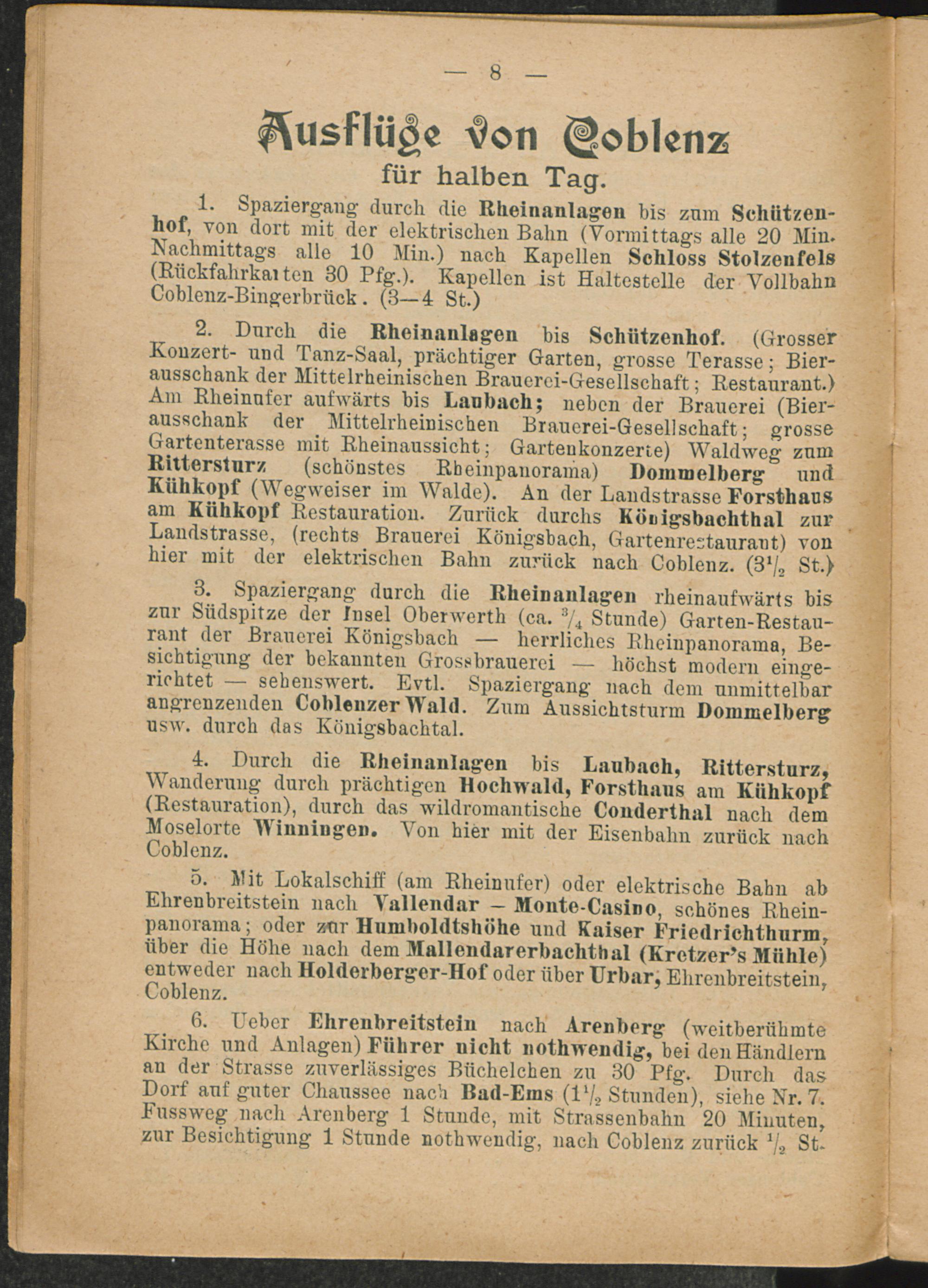 Kleiner Führer durch Coblenz und Umgegend mit Fahrplänen