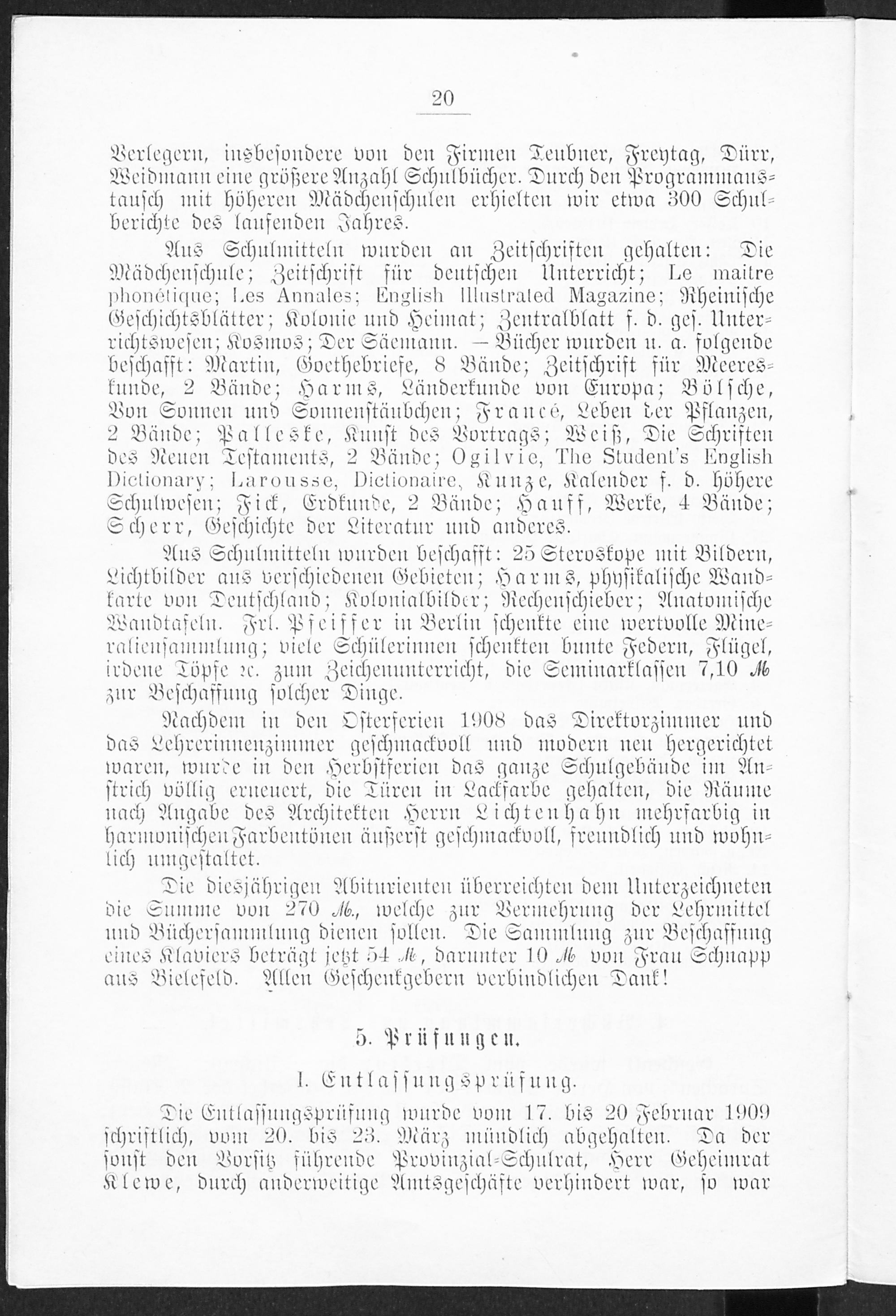 4. Büchersammlung und Lehrmittel.