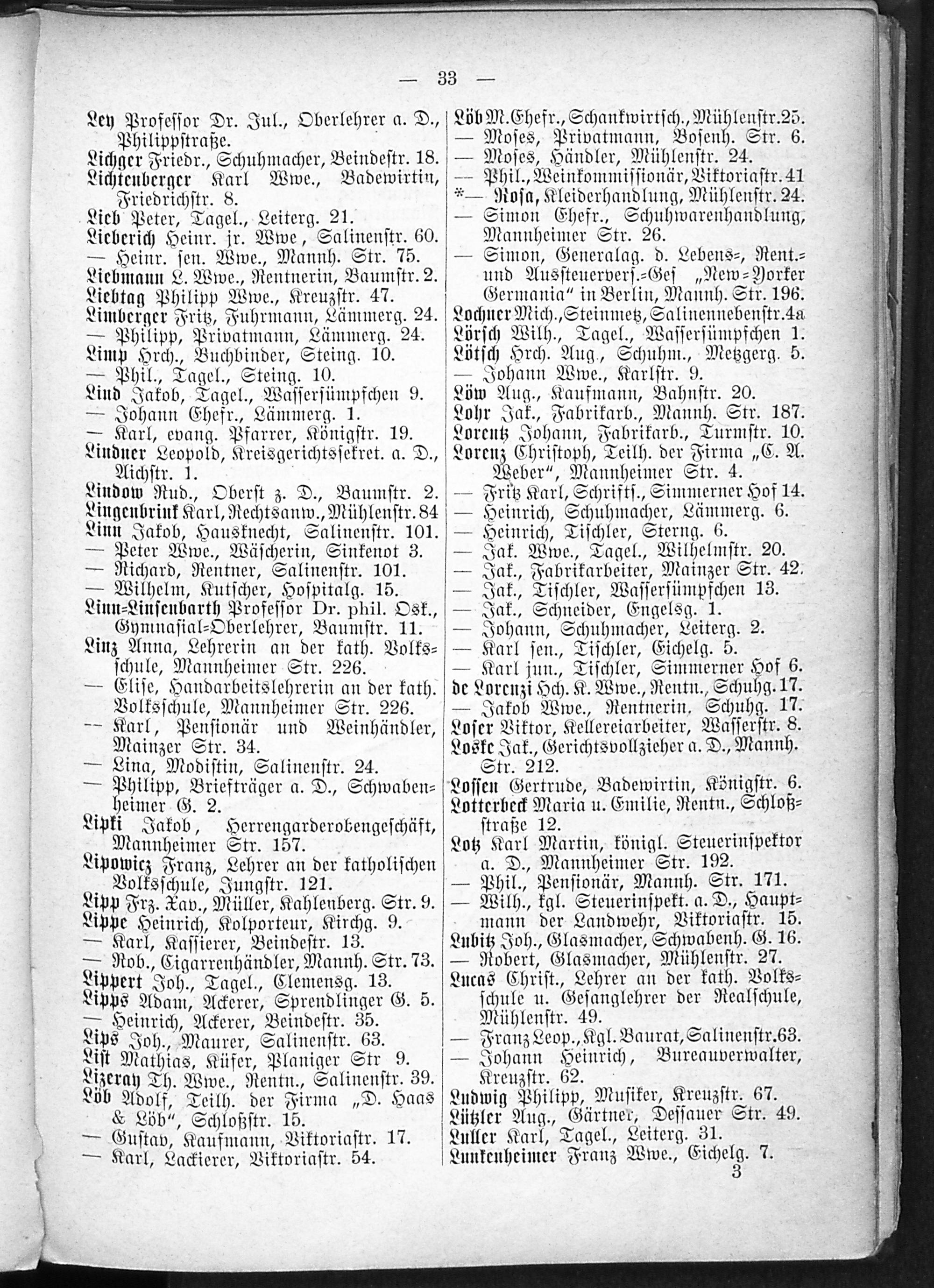 2. Verzeichnis der Haushaltungen nach Straßen und Hausnummern.