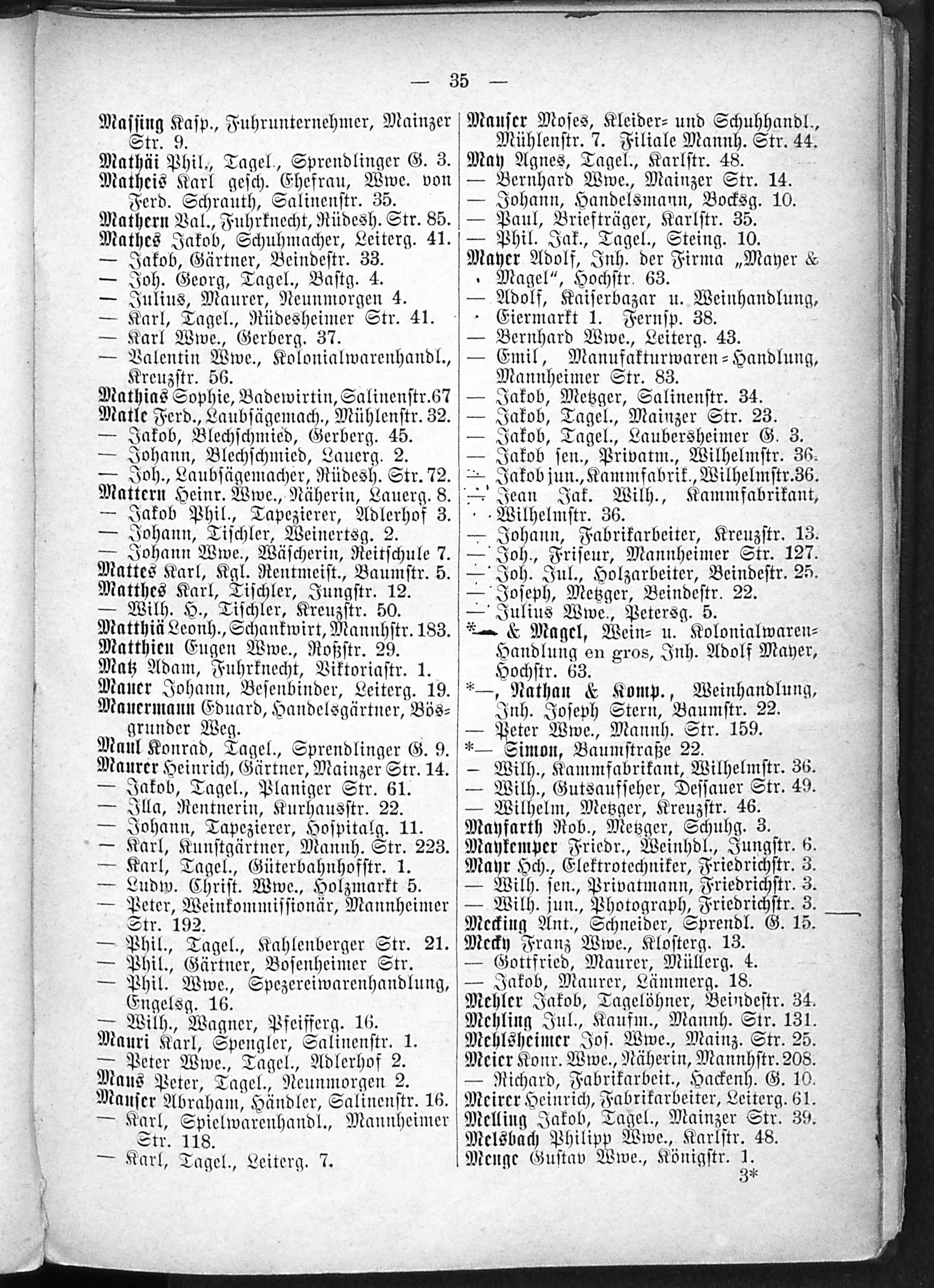 2. Verzeichnis der Haushaltungen nach Straßen und Hausnummern.
