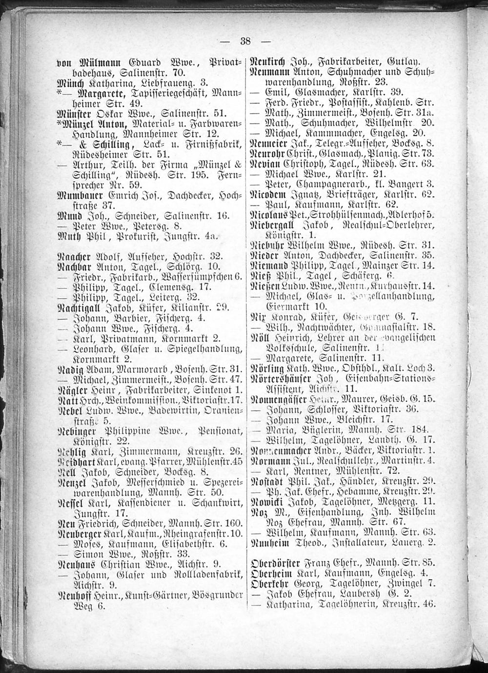2. Verzeichnis der Haushaltungen nach Straßen und Hausnummern.