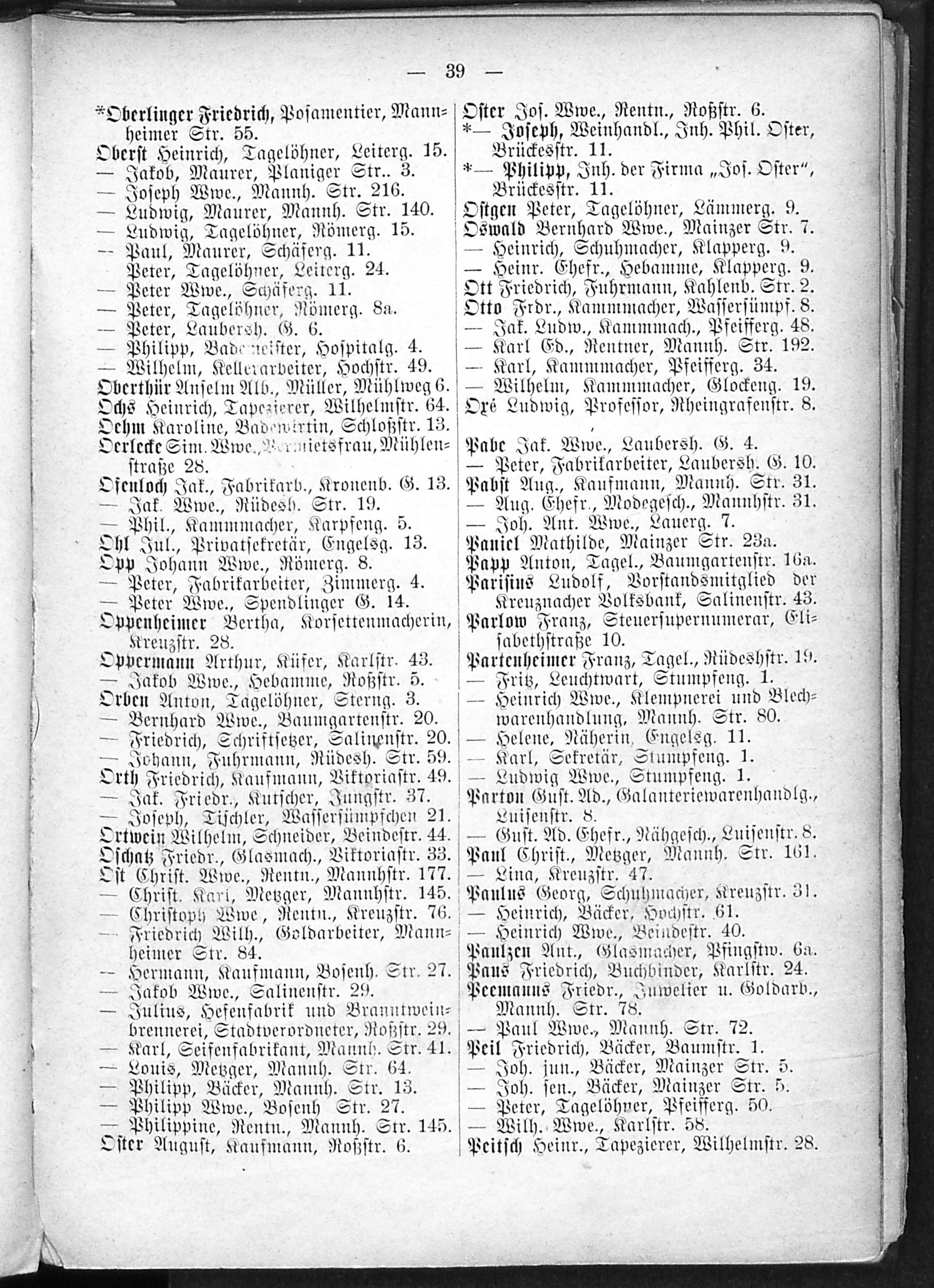 2. Verzeichnis der Haushaltungen nach Straßen und Hausnummern.