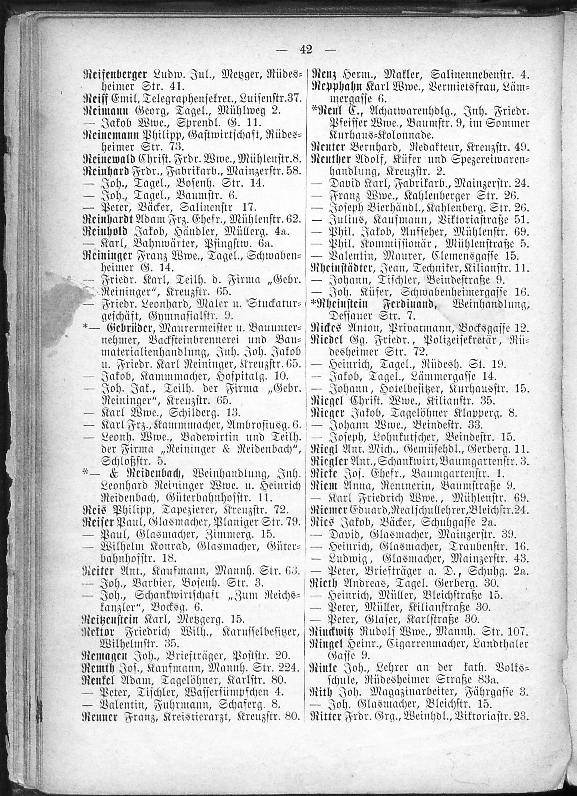1. Alphabetisches Verzeichnis der selbständigen oder eigene Haushaltung führenden...