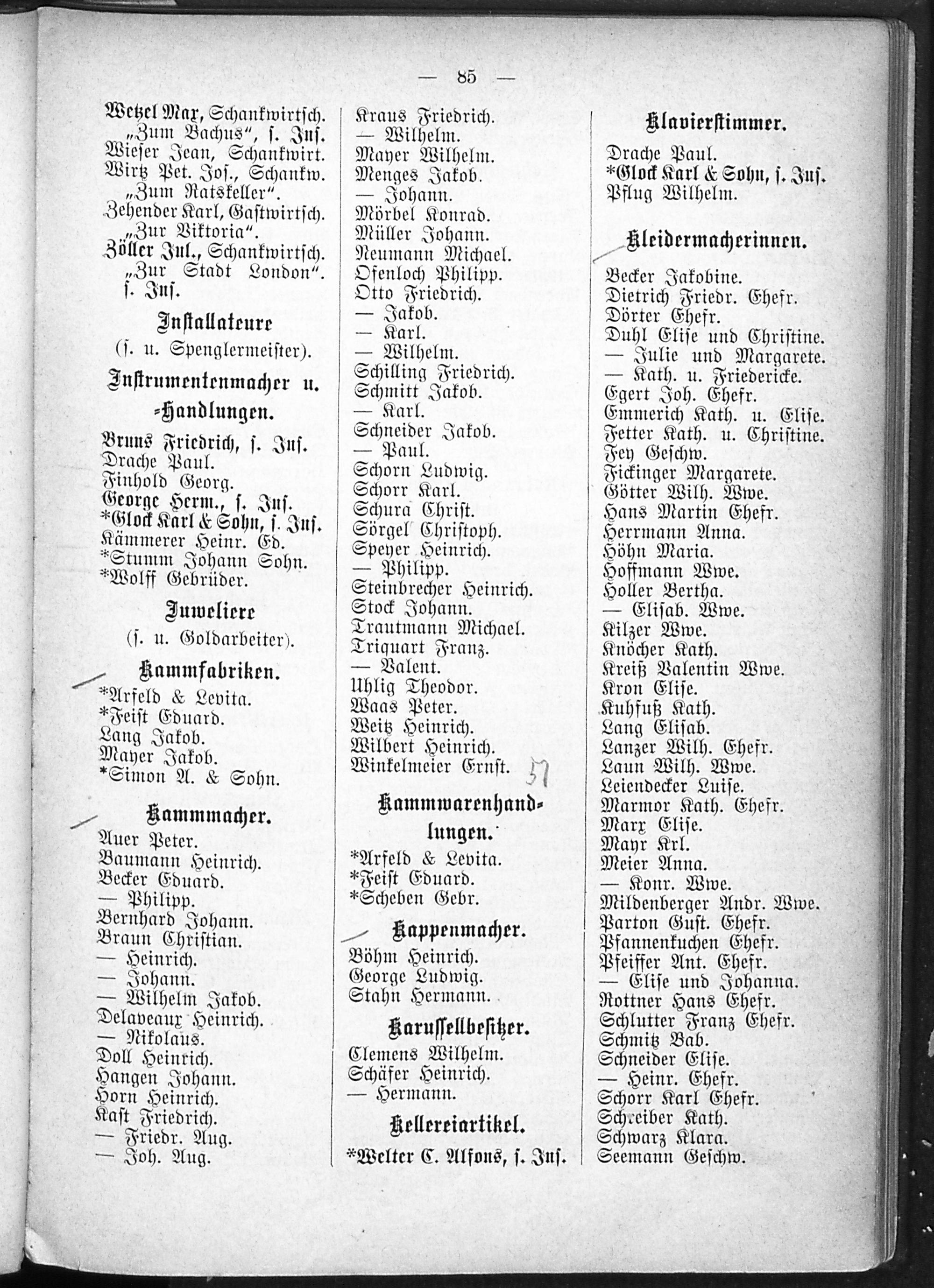 1. Alphabetisches Verzeichnis der selbständigen oder eigene Haushaltung führenden Personen.