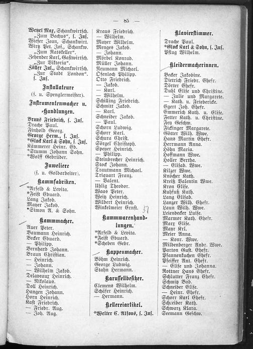 2. Verzeichnis der Haushaltungen nach Straßen und Hausnummern.