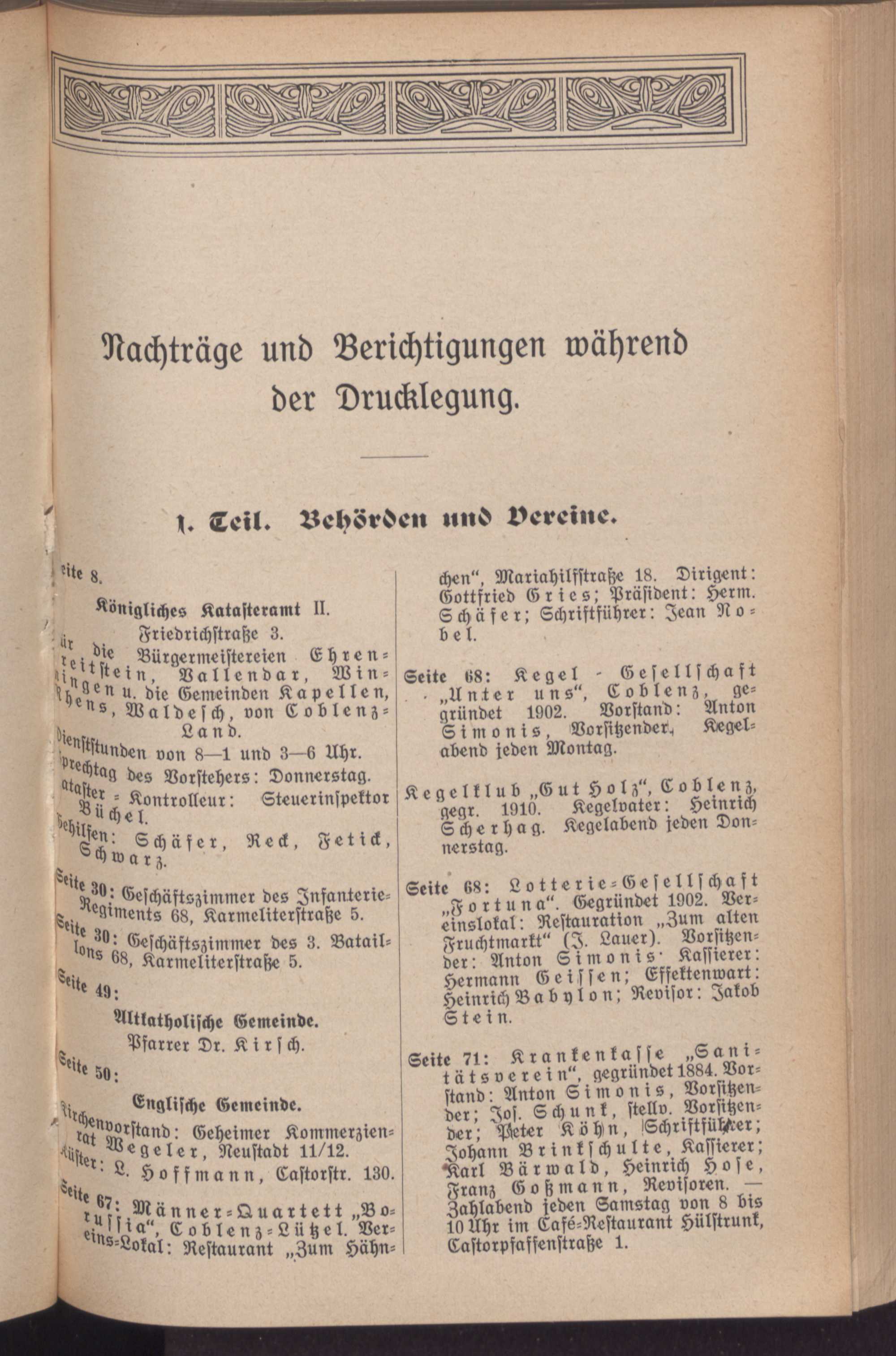 Adreßbuch ... der Residenzstadt Coblenz : mit Coblenz-Lützel, Coblenz-Neuendorf, und Coblenz-Moselweiß sowie Metternich, Ehrenbreitstein, Pfaffendorf, Horchheim, Vallendar, Mallendar, Höhr und Grenzhausen ; nach amtlichen Quellen bearb