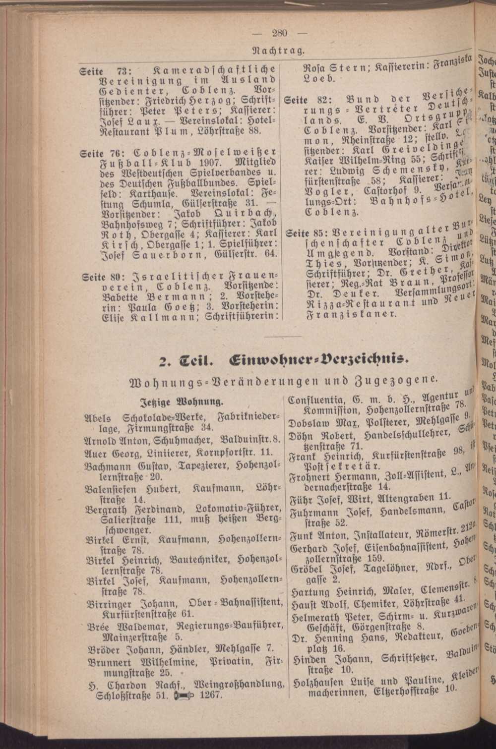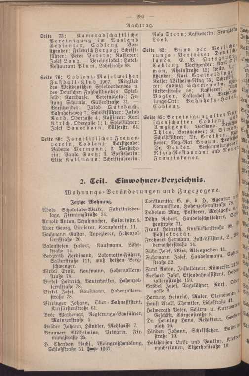 Adreßbuch ... der Residenzstadt Coblenz : mit Coblenz-Lützel, Coblenz-Neuendorf, und Coblenz-Moselweiß sowie Metternich, Ehrenbreitstein, Pfaffendorf, Horchheim, Vallendar, Mallendar, Höhr und Grenzhausen ; nach amtlichen Quellen bearb