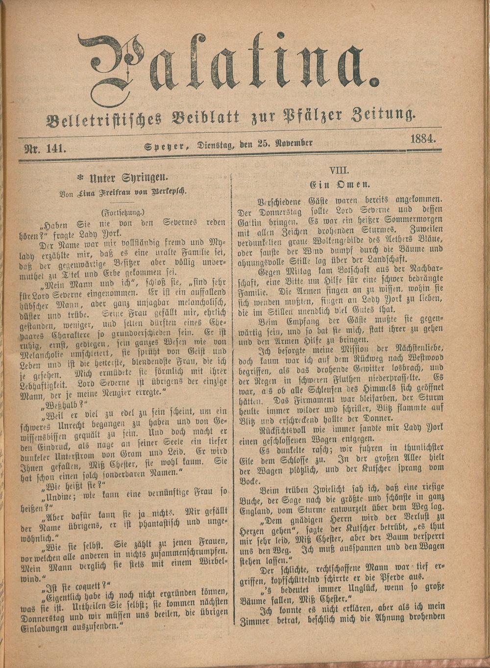 Palatina : Heimatblatt des Pfälzer Anzeigers