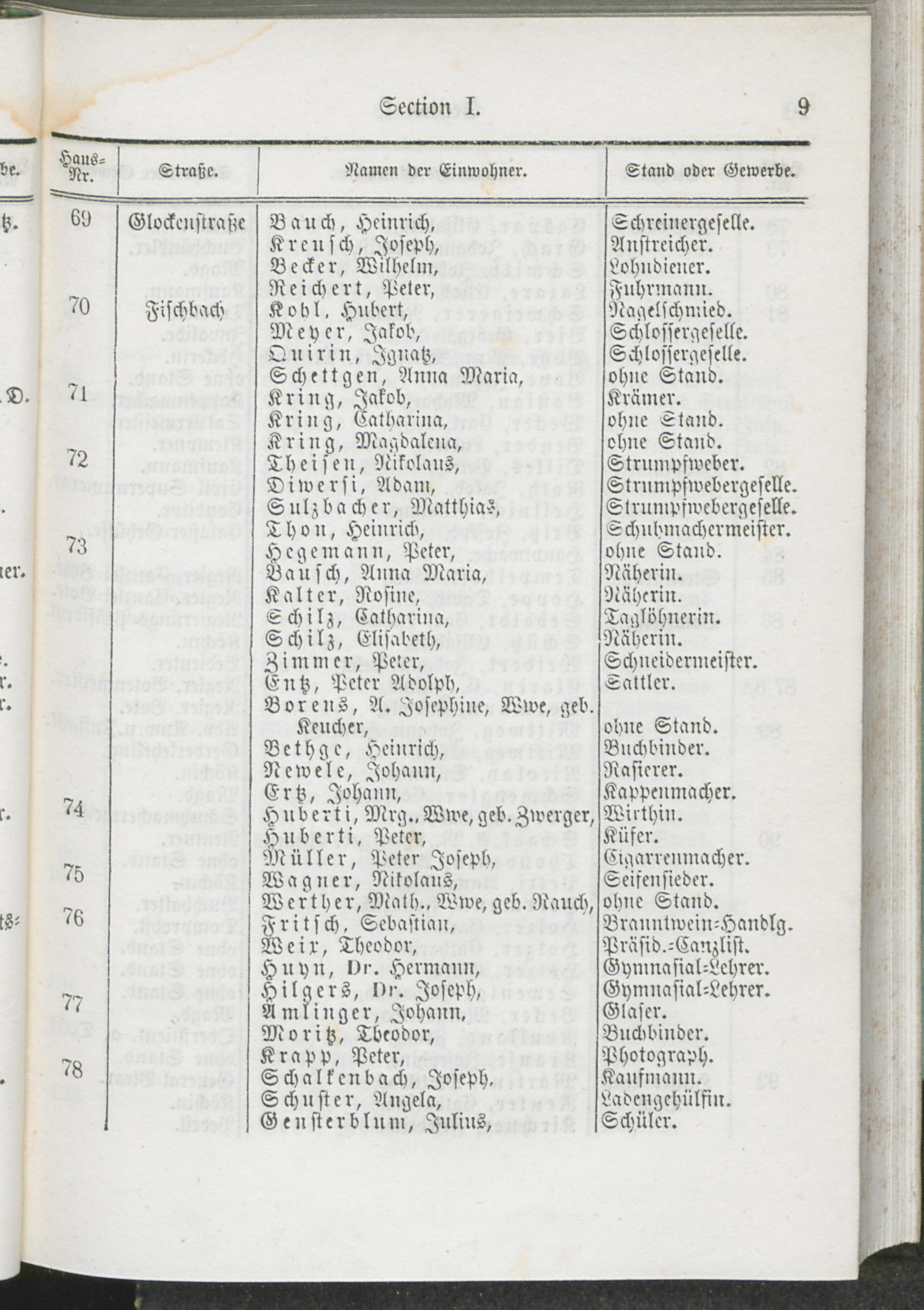 Alphabetisches Namens-Verzeichniß der Einwohner von Trier.