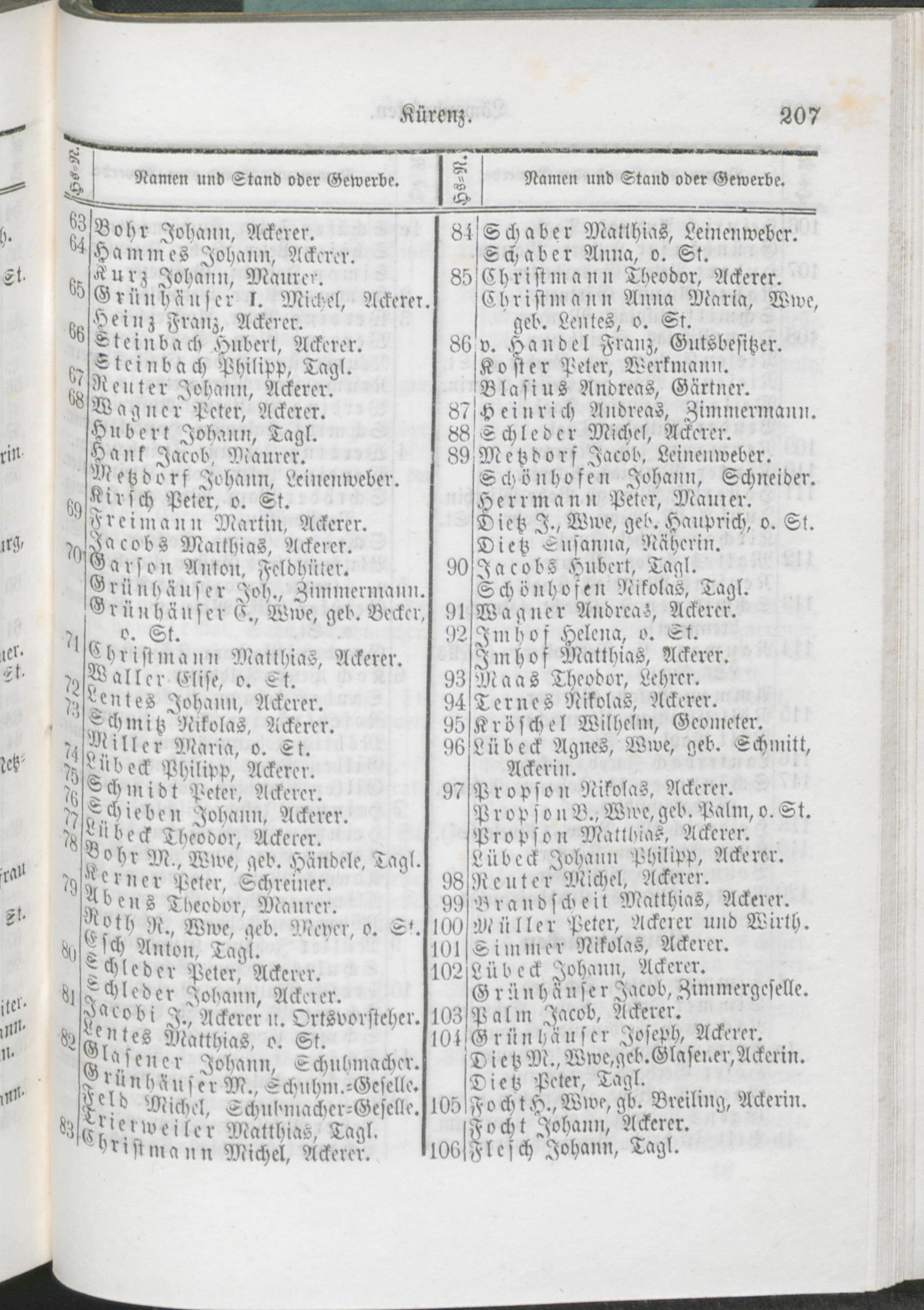 Alphabetisches Namens-Verzeichniß der Einwohner von Trier.