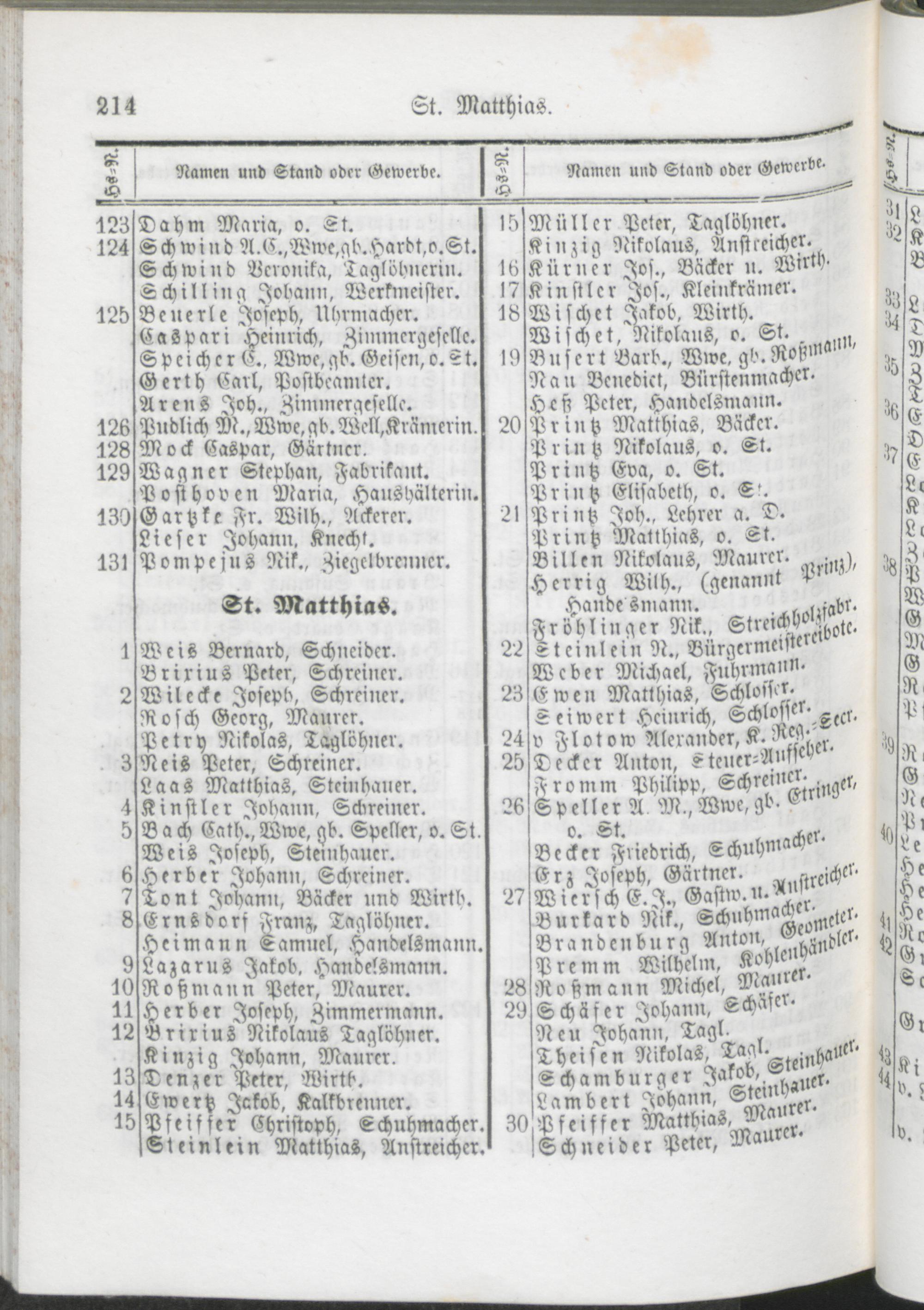 Alphabetisches Namens-Verzeichniß der Einwohner von Trier.