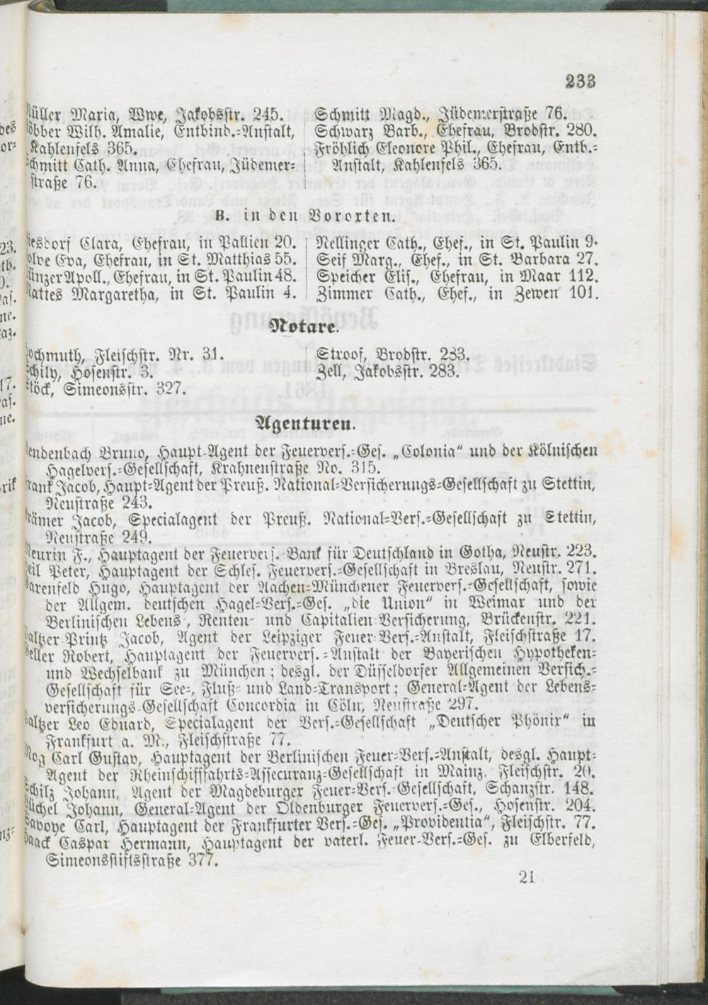 Nachweis der Advocaten, Aerzte ( Civil-, Militär-, Wund- und Thier-Aerzte), Apotheker, Gerichtsvollzieher, Notare, Hebammen, Commissionäre und Feuerversicherungs- etc. etc., Agenten.