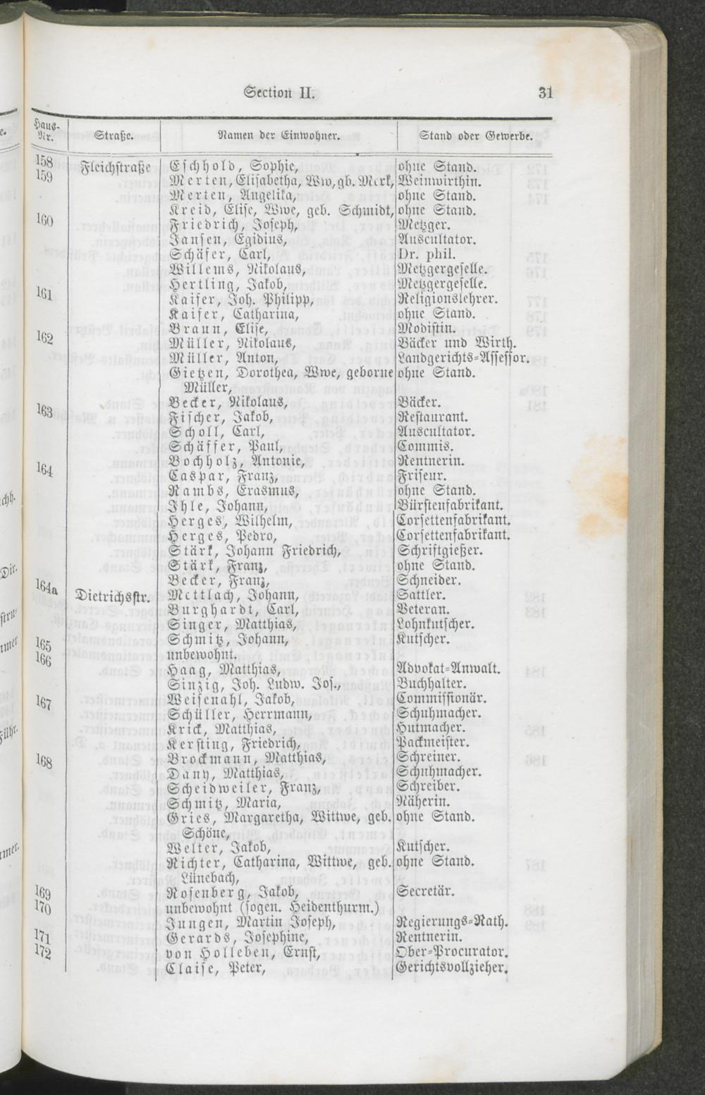 Alphabetisches Namens-Verzeichniß der Einwohner von Trier.