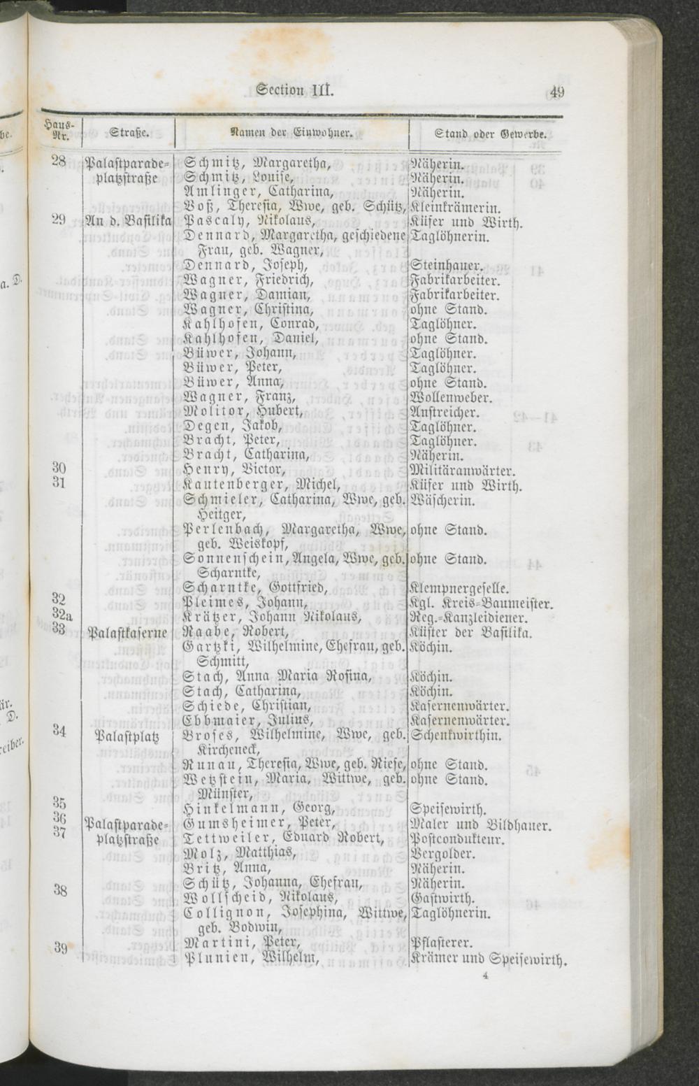 Alphabetisches Verzeichniß der Straßen und Plätze der Stadt Trier und Bezeichnung der Lage nach Sectionen und Hausnummern.