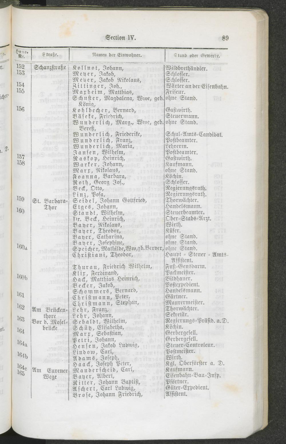 Alphabetisches Namens-Verzeichniß der Einwohner von Trier.