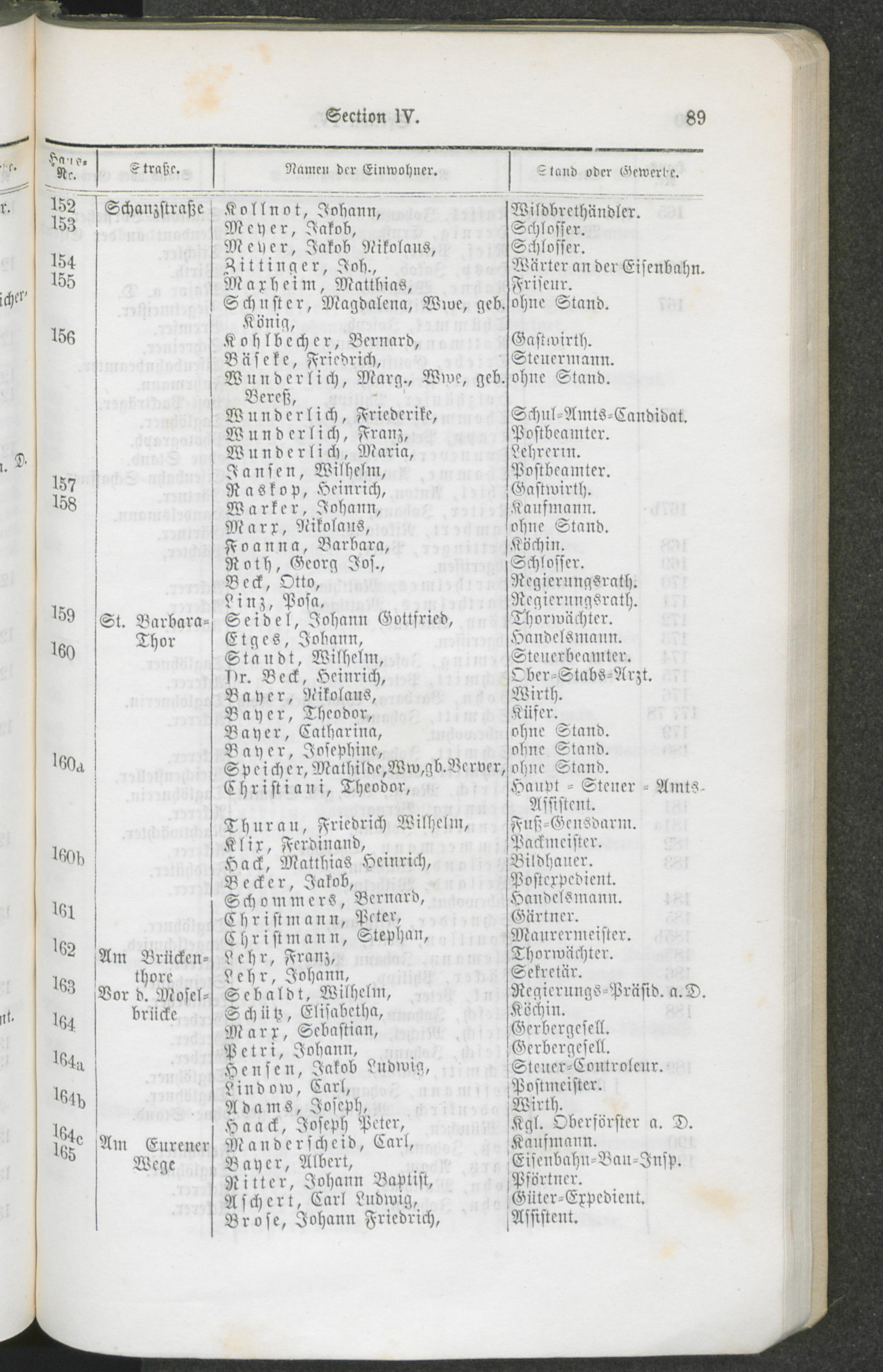 Alphabetisches Verzeichniß der Straßen und Plätze der Stadt Trier und Bezeichnung der Lage nach Sectionen und Hausnummern.