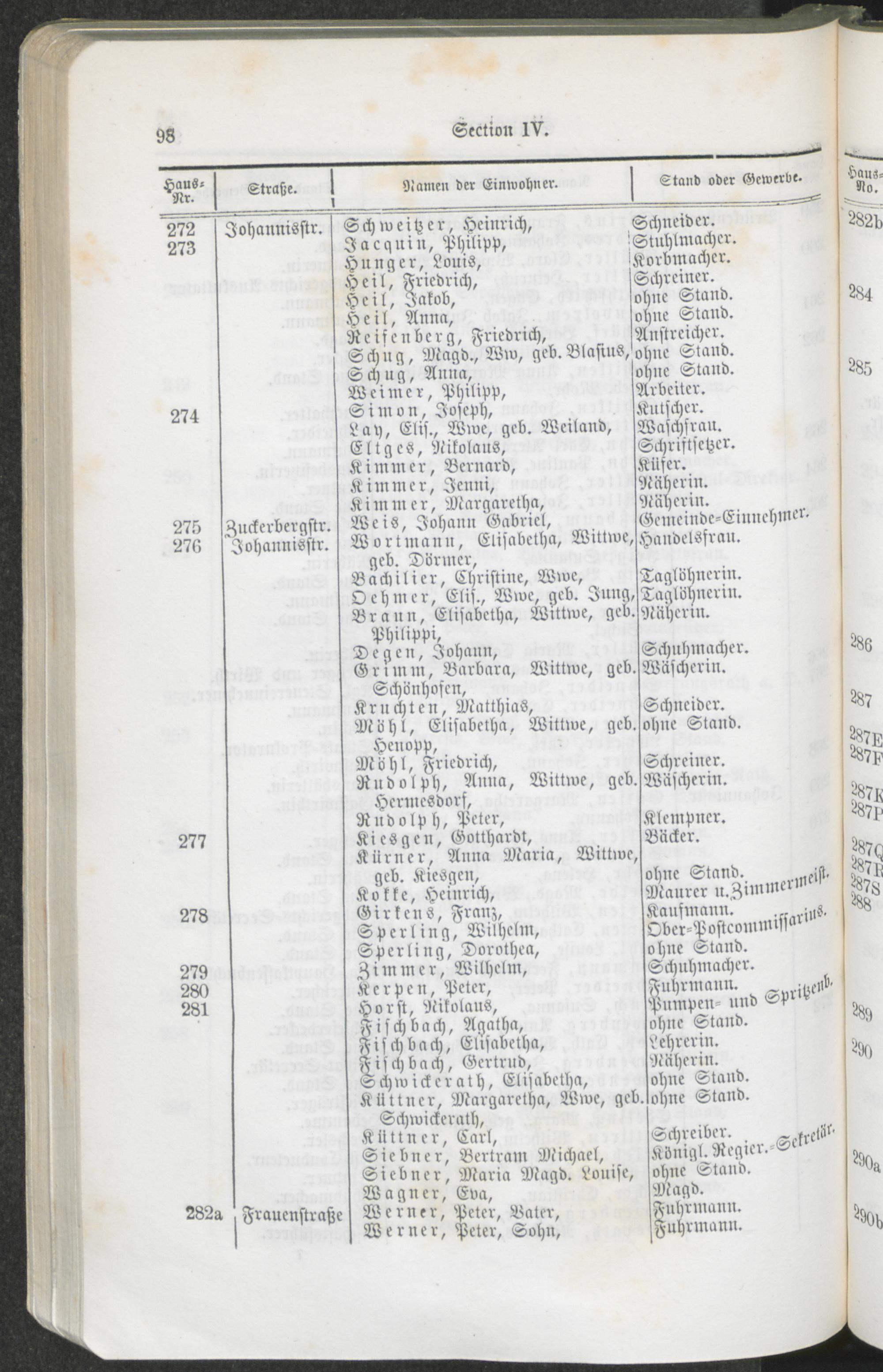Alphabetisches Verzeichniß der Straßen und Plätze der Stadt Trier und Bezeichnung der Lage nach Sectionen und Hausnummern.